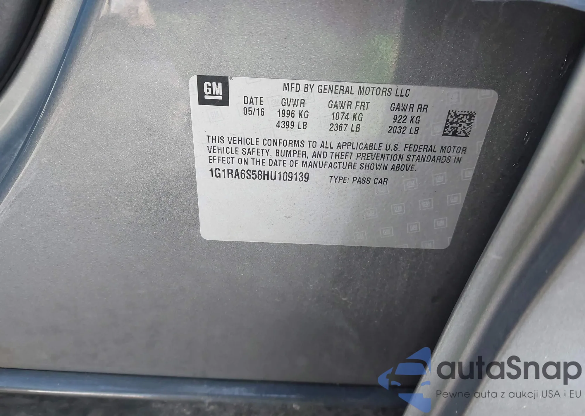VIN: 1G1RA6S58HU109139