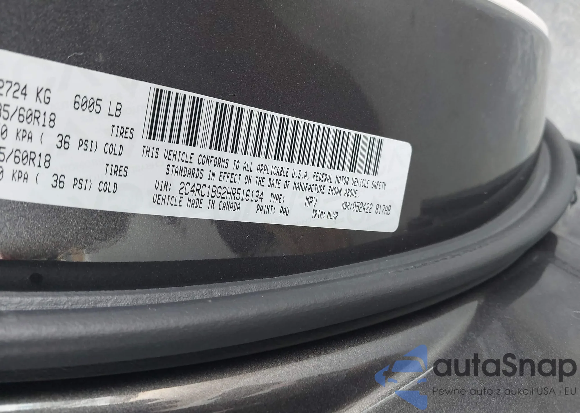 • VIN: 2C4RC1BG2HR516134