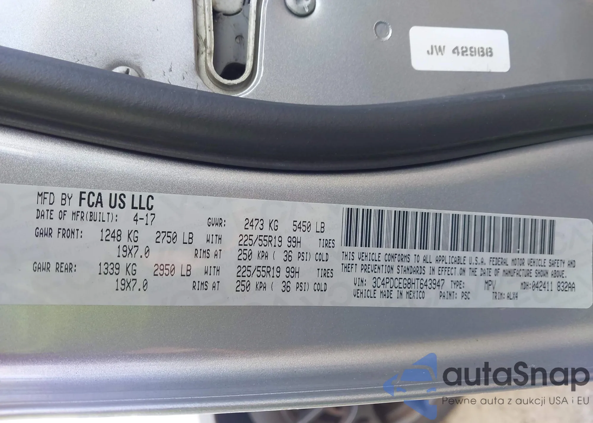 • VIN: 3C4PDCEG8HT643947