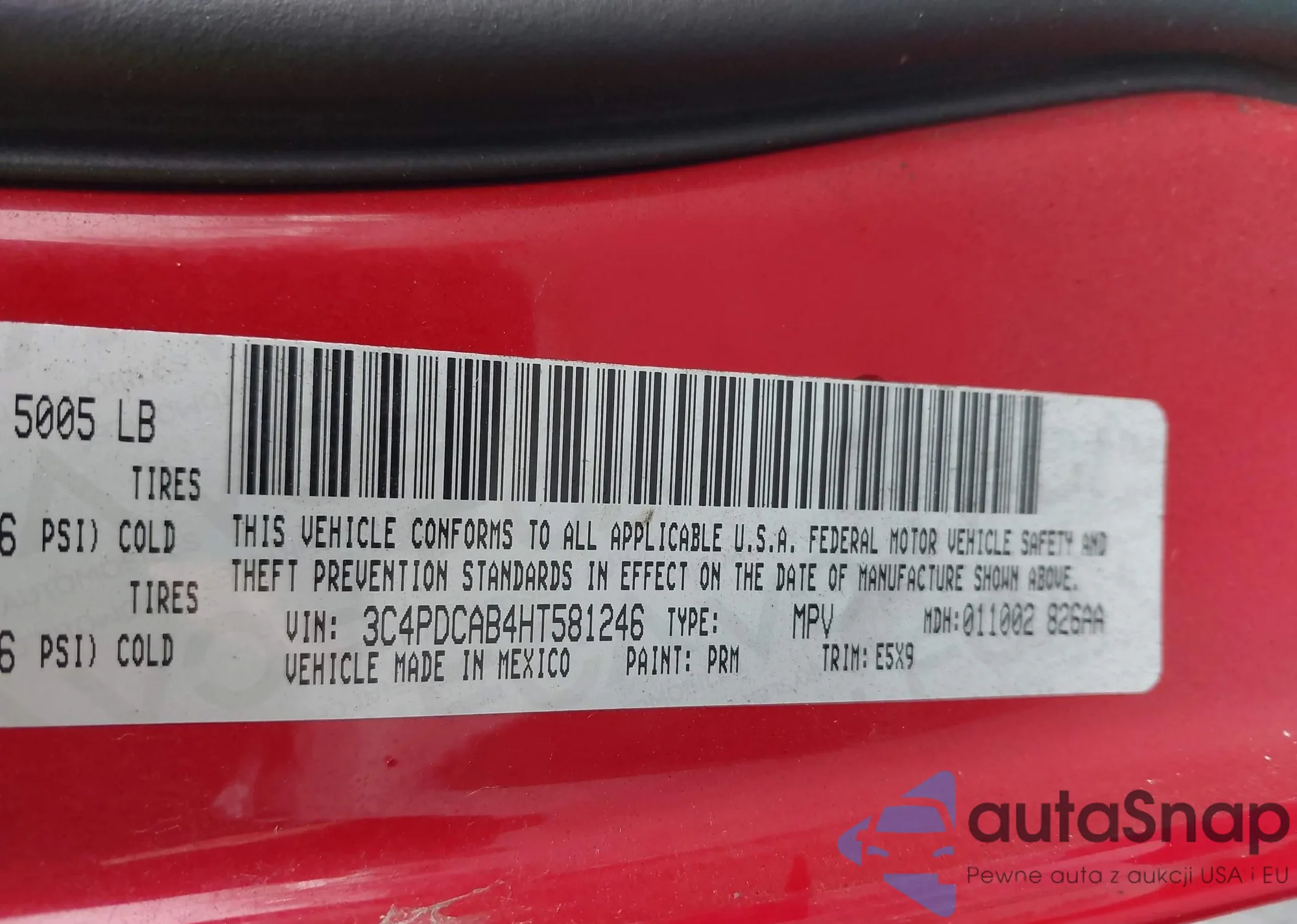 Автомобиль Dodge Journey 2017 (VIN 3C4PDCAB4HT581246) ранее не участвовал в торгах. Документы чистые, пробег соответствует или ниже среднего по рынку. Продаётся страховой компанией — рекомендуем покупку. Доставка в порт займет около 6–8 недель.