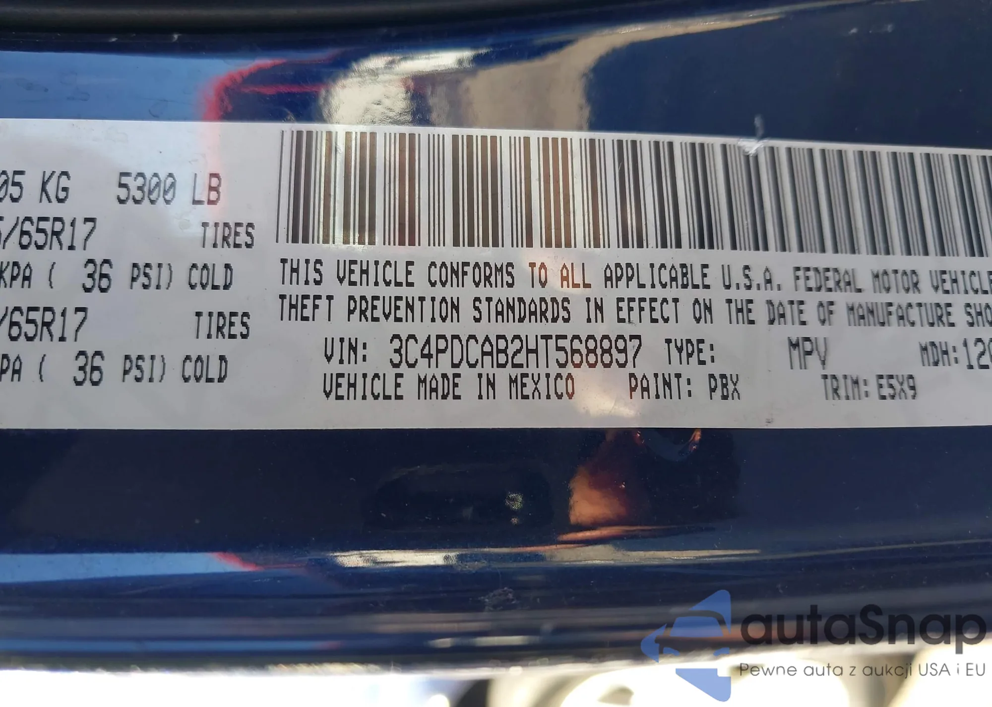 Автомобиль Dodge Journey 2017 (VIN 3C4PDCAB2HT568897) ранее не участвовал в торгах. Документы чистые, пробег соответствует или ниже среднего по рынку. Продаётся страховой компанией — рекомендуем покупку. Доставка в порт займет около 6–8 недель.