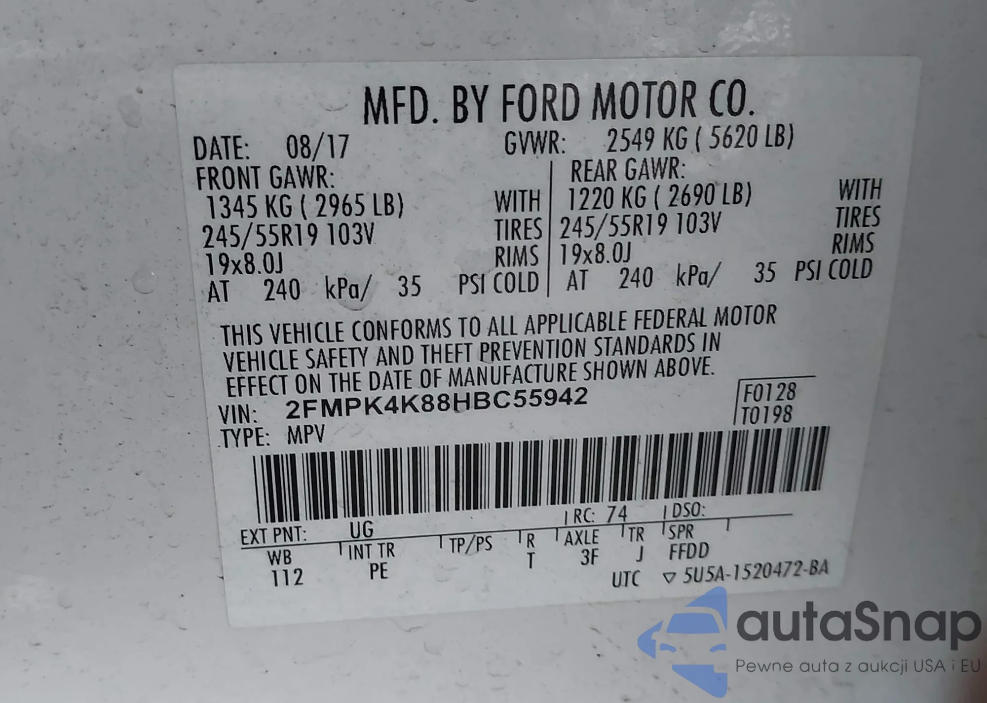 Автомобиль Ford Edge 2017 (VIN 2FMPK4K88HBC55942) ранее не участвовал в торгах. Документы чистые, пробег соответствует или ниже среднего по рынку. Продаётся страховой компанией — рекомендуем покупку. Доставка в порт займет около 6–8 недель.