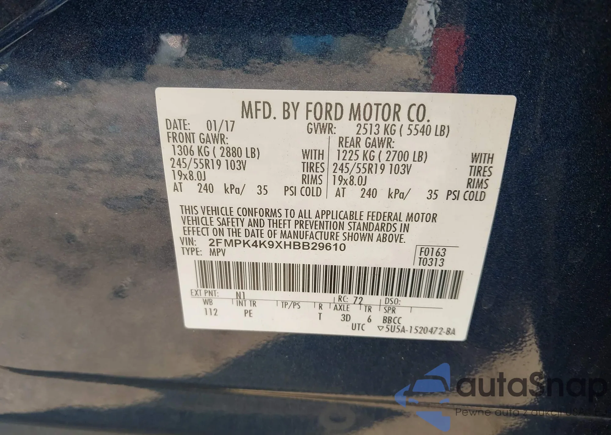 • VIN: 2FMPK4K9XHBB29610