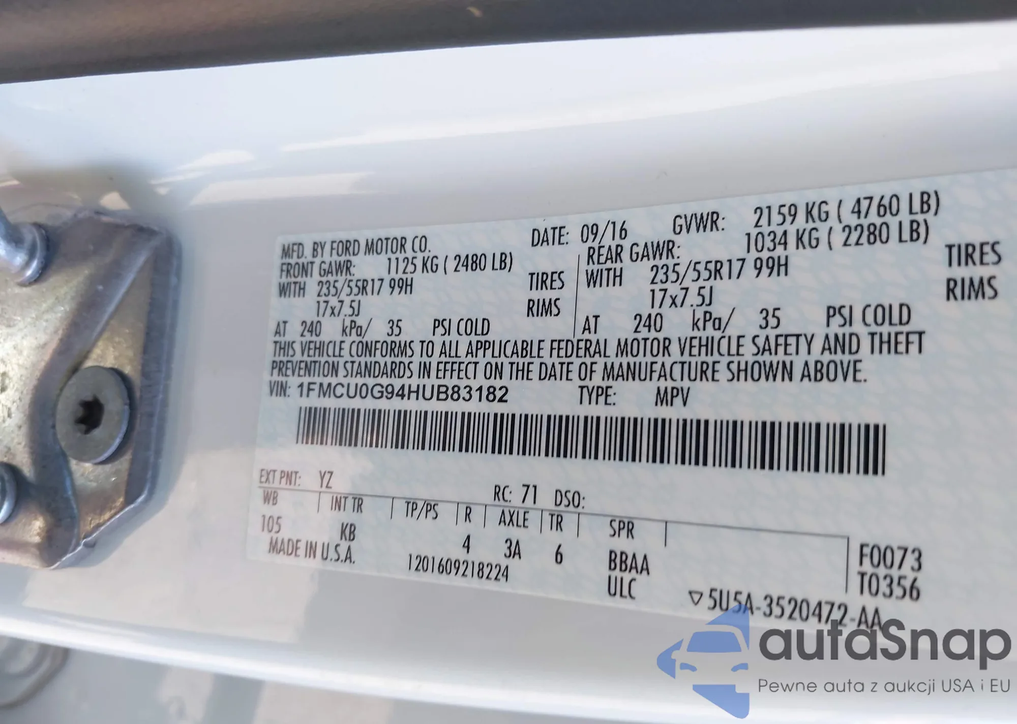 VIN: 1FMCU0G94HUB83182