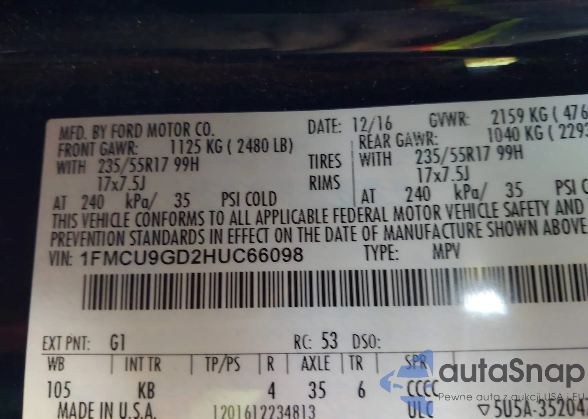 VIN: 1FMCU9GD2HUC66098