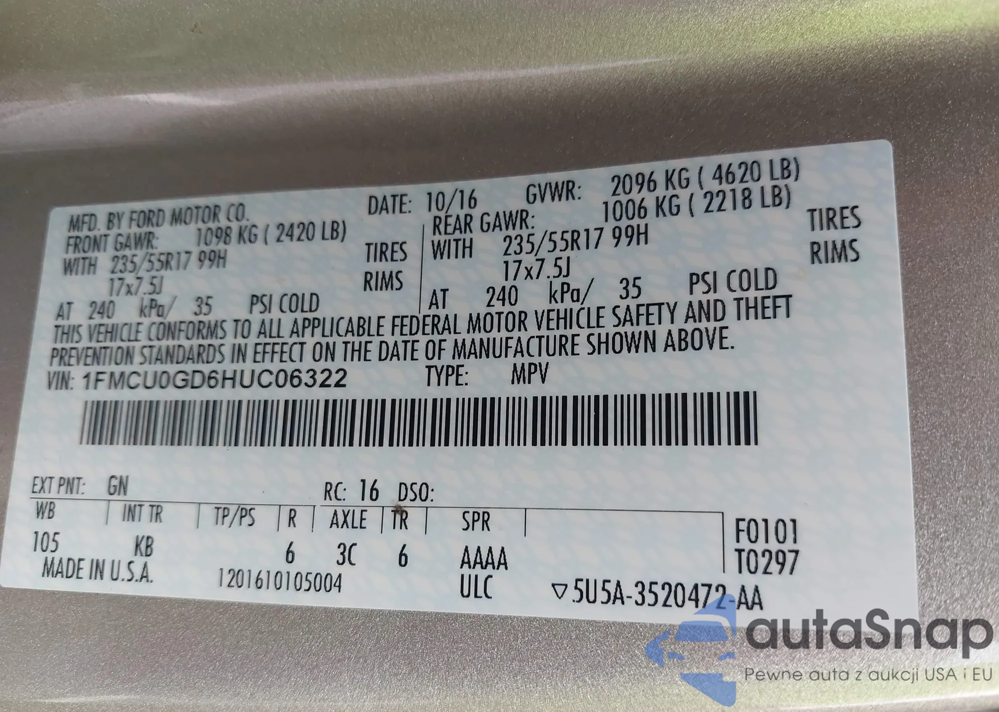 VIN: 1FMCU0GD6HUC06322