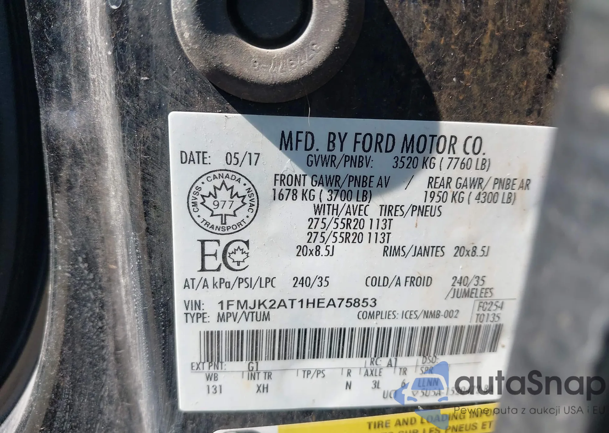 Автомобиль Ford Expedition 2017 (VIN 1FMJK2AT1HEA75853) ранее не участвовал в торгах. Документы чистые, пробег соответствует или ниже среднего по рынку. Продаётся страховой компанией — рекомендуем покупку. Доставка в порт займет около 6–8 недель.