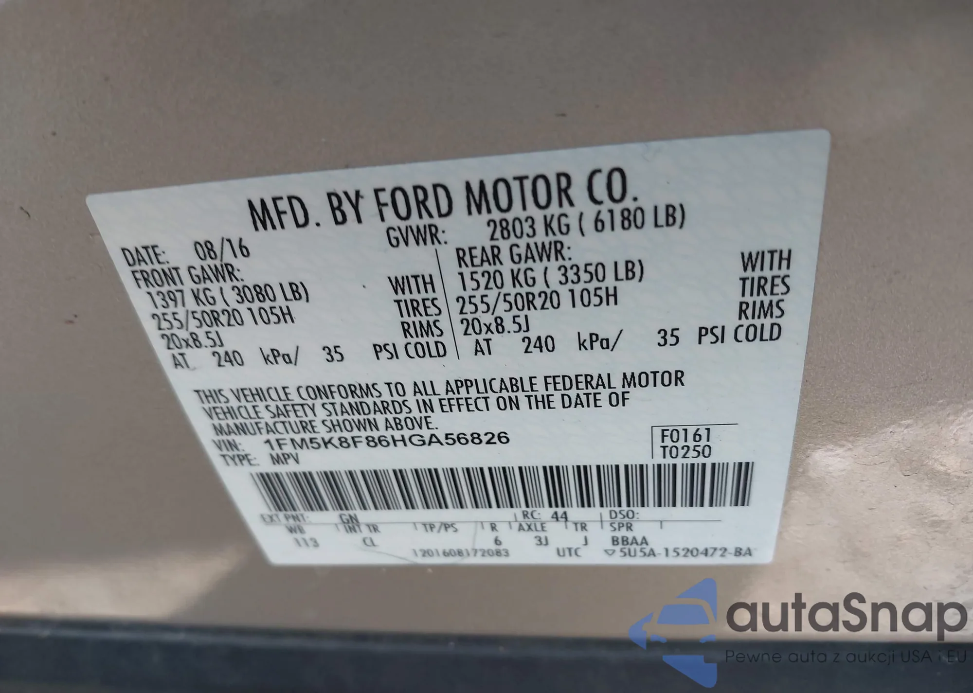 VIN: 1FM5K8F86HGA56826