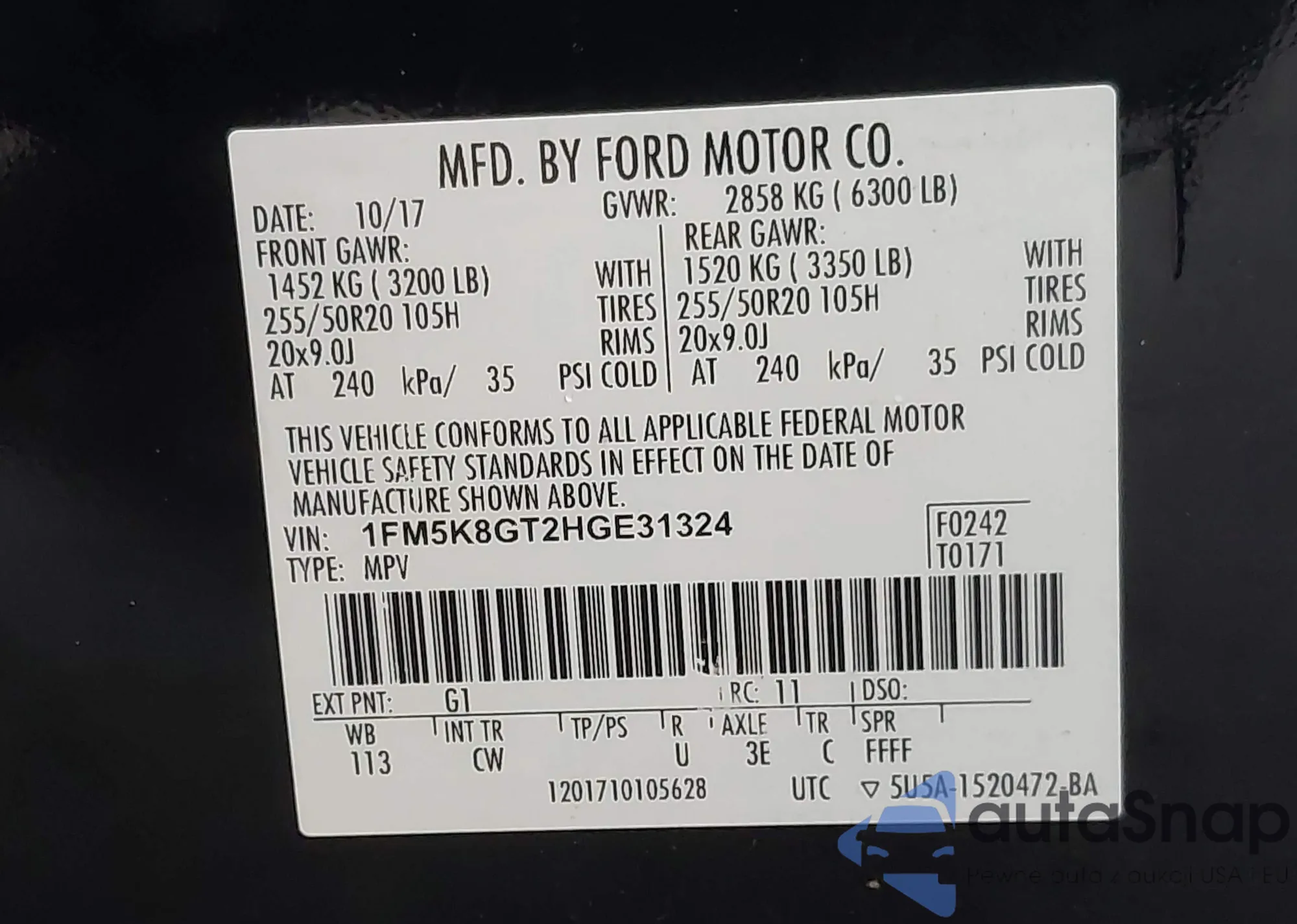 VIN: 1FM5K8GT2HGE31324