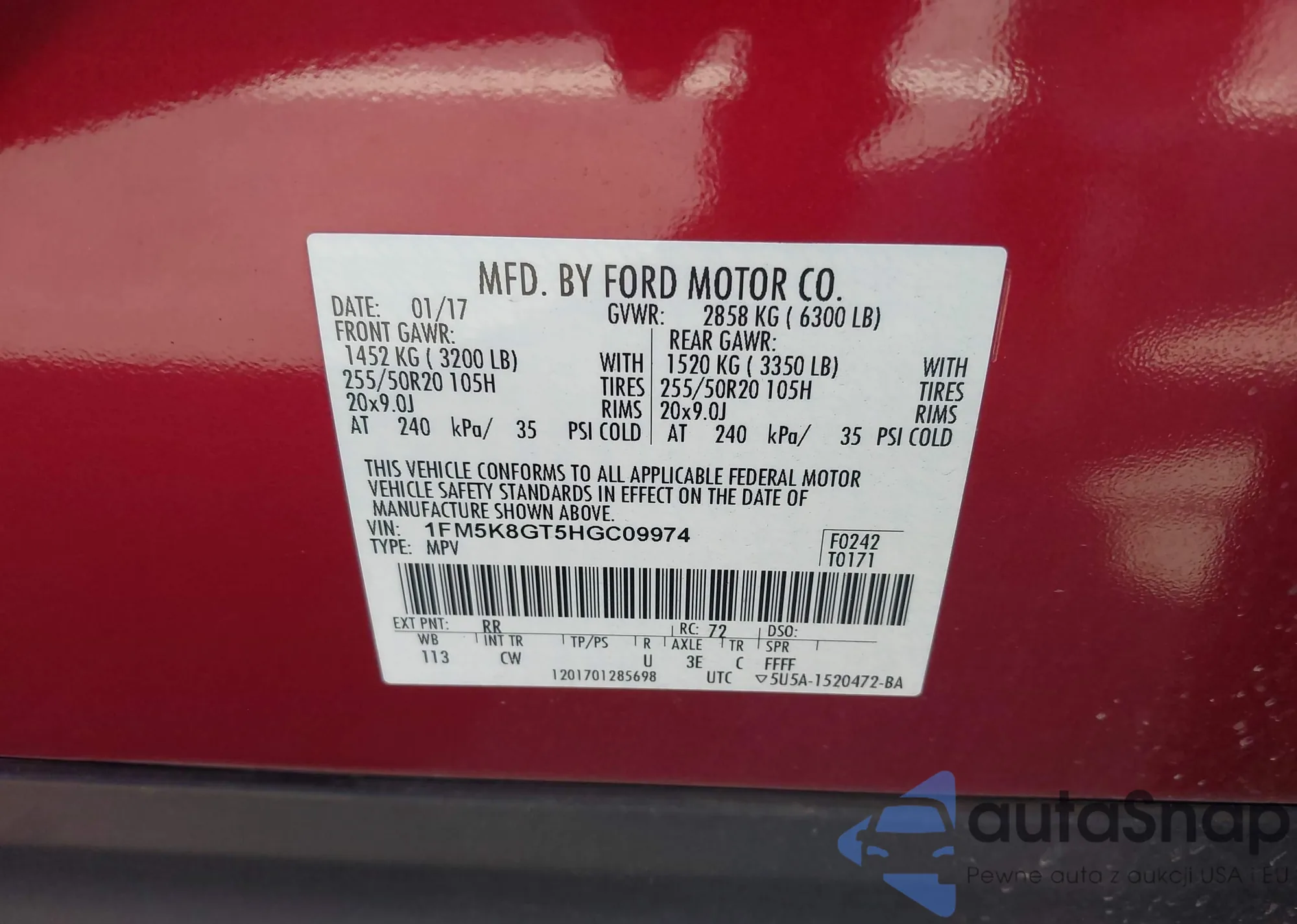 Автомобиль Ford Explorer 2017 (VIN 1FM5K8GT5HGC09974) ранее не участвовал в торгах. Документы чистые, пробег соответствует или ниже среднего по рынку. Продаётся страховой компанией — рекомендуем покупку. Доставка в порт займет около 6–8 недель.