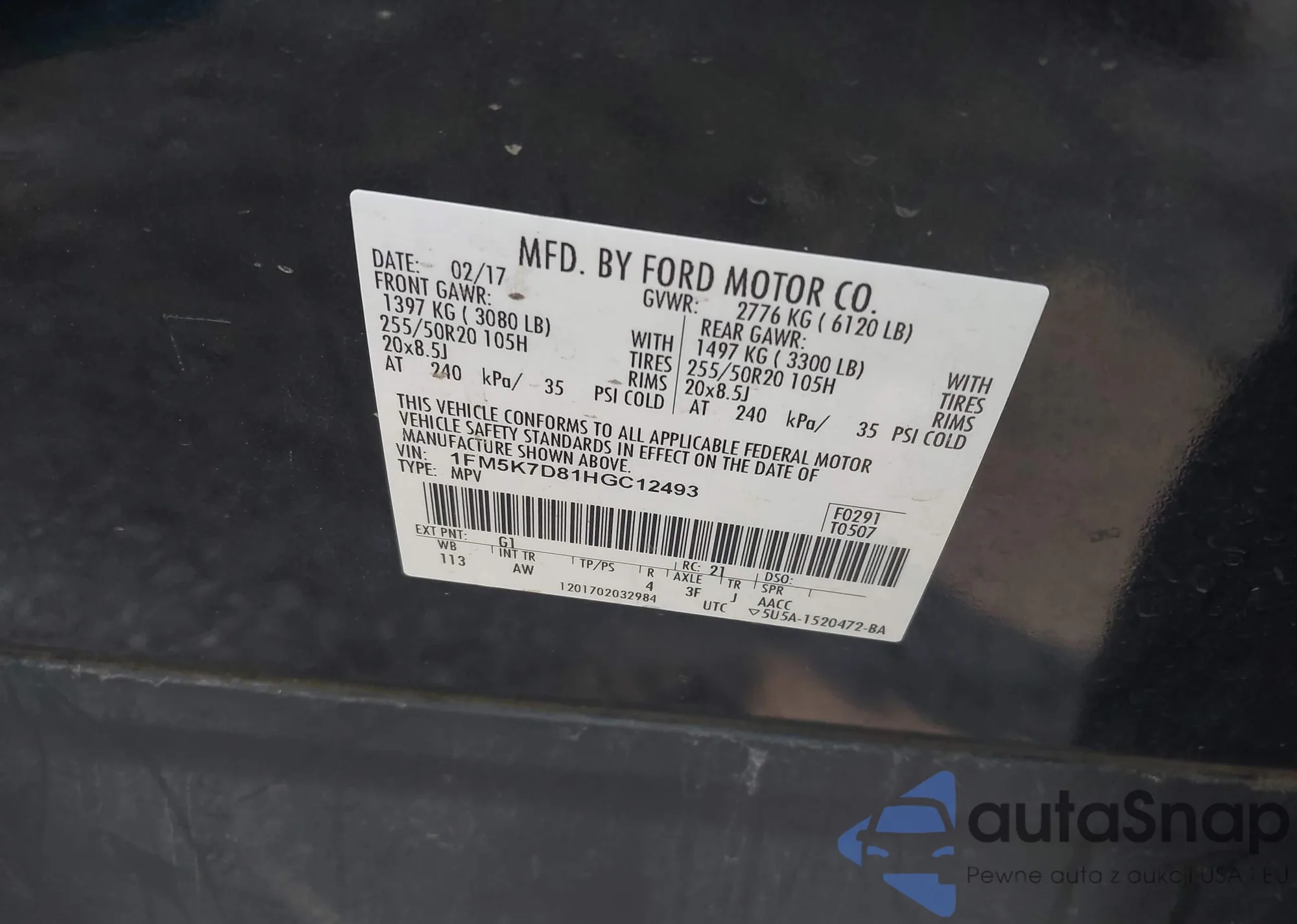 VIN: 1FM5K7D81HGC12493