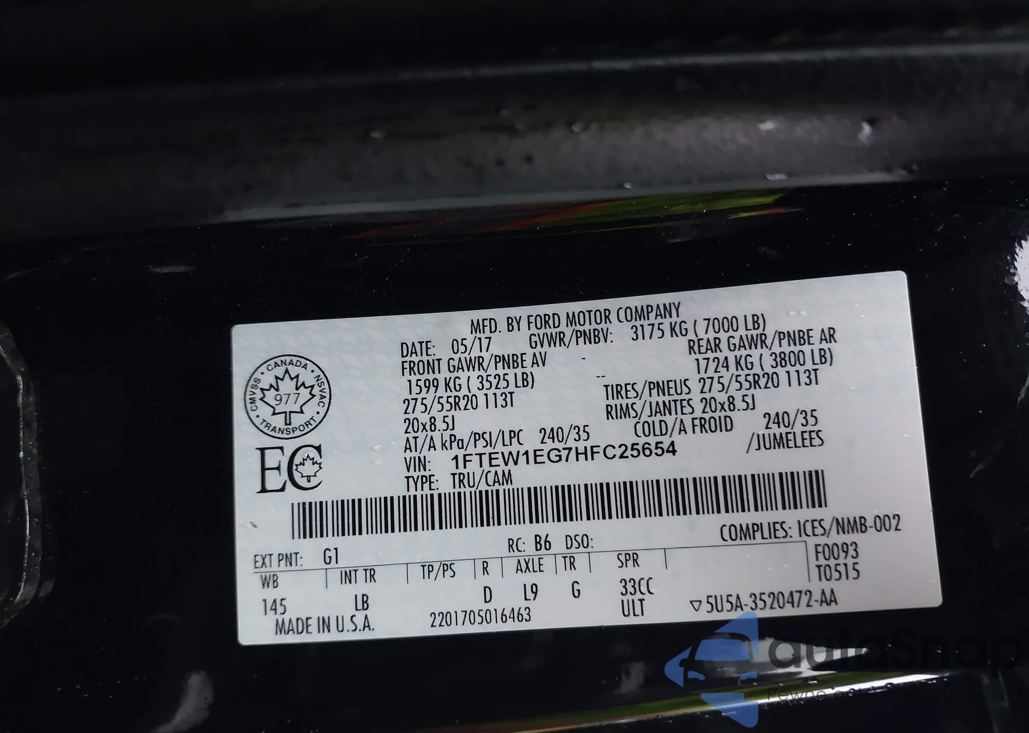 VIN: 1FTEW1EG7HFC25654