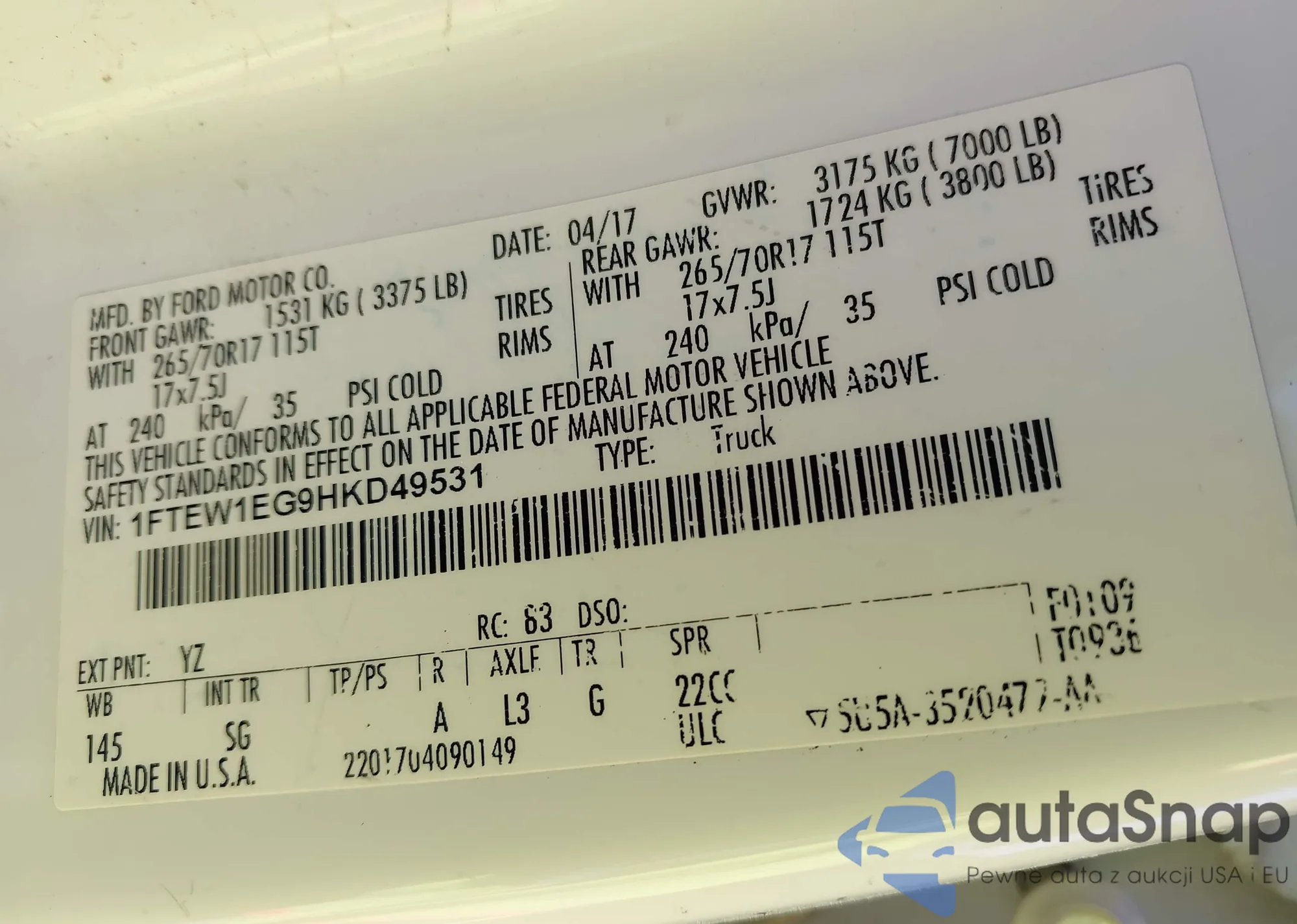 VIN: 1FTEW1EG9HKD49531
