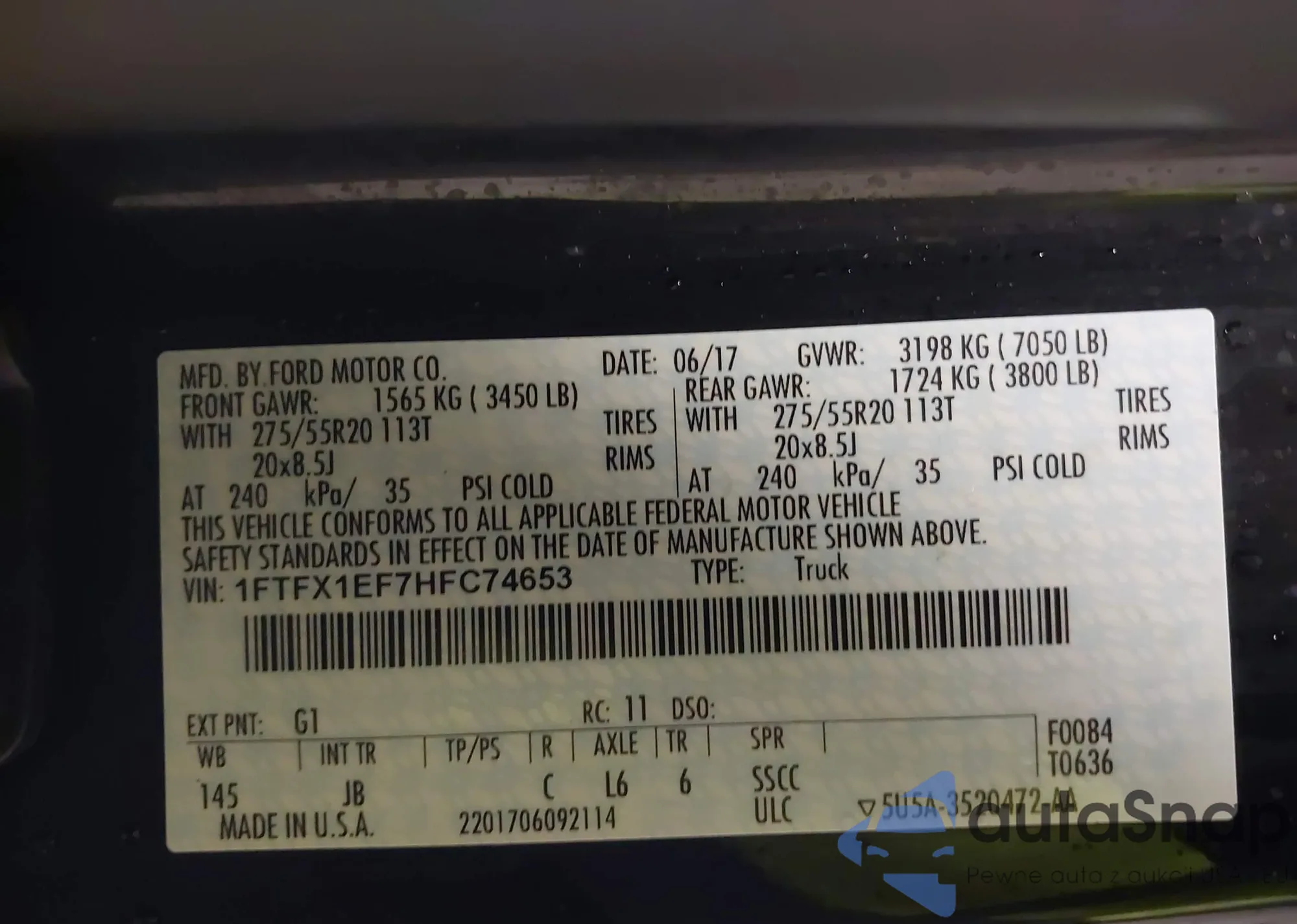 • VIN: 1FTFX1EF7HFC74653