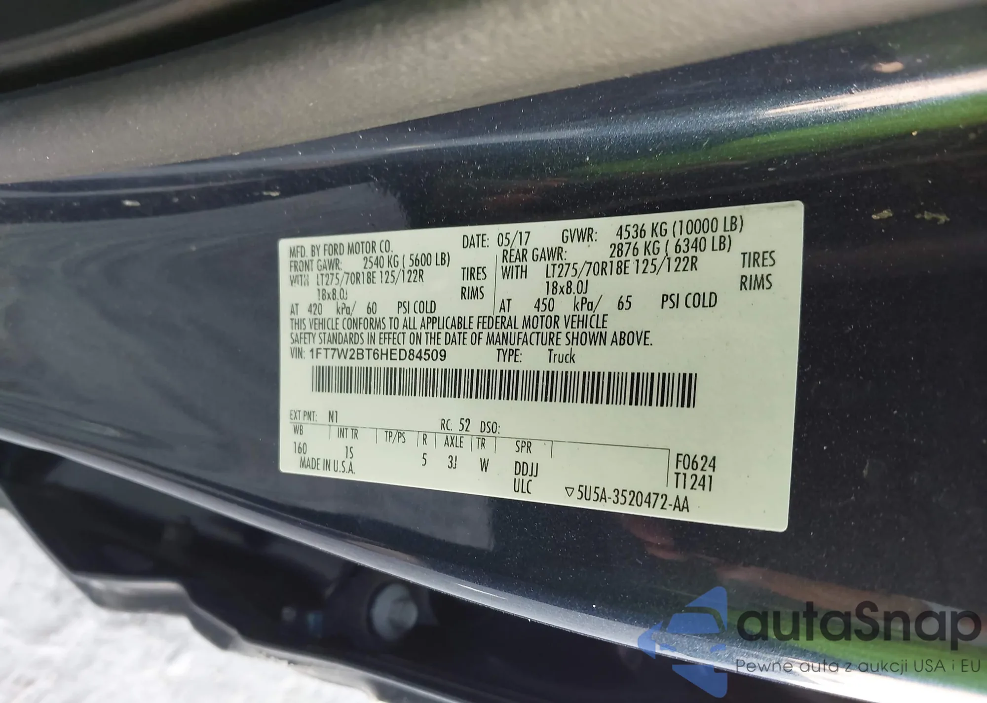 VIN: 1FT7W2BT6HED84509