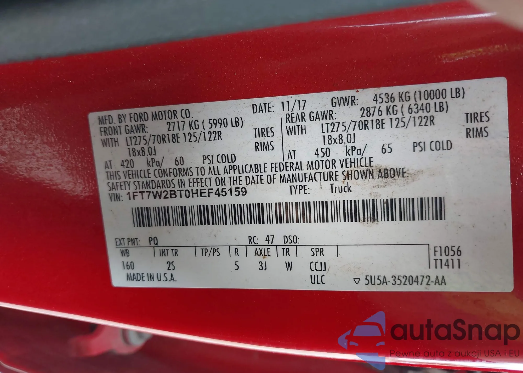 • VIN: 1FT7W2BT0HEF45159