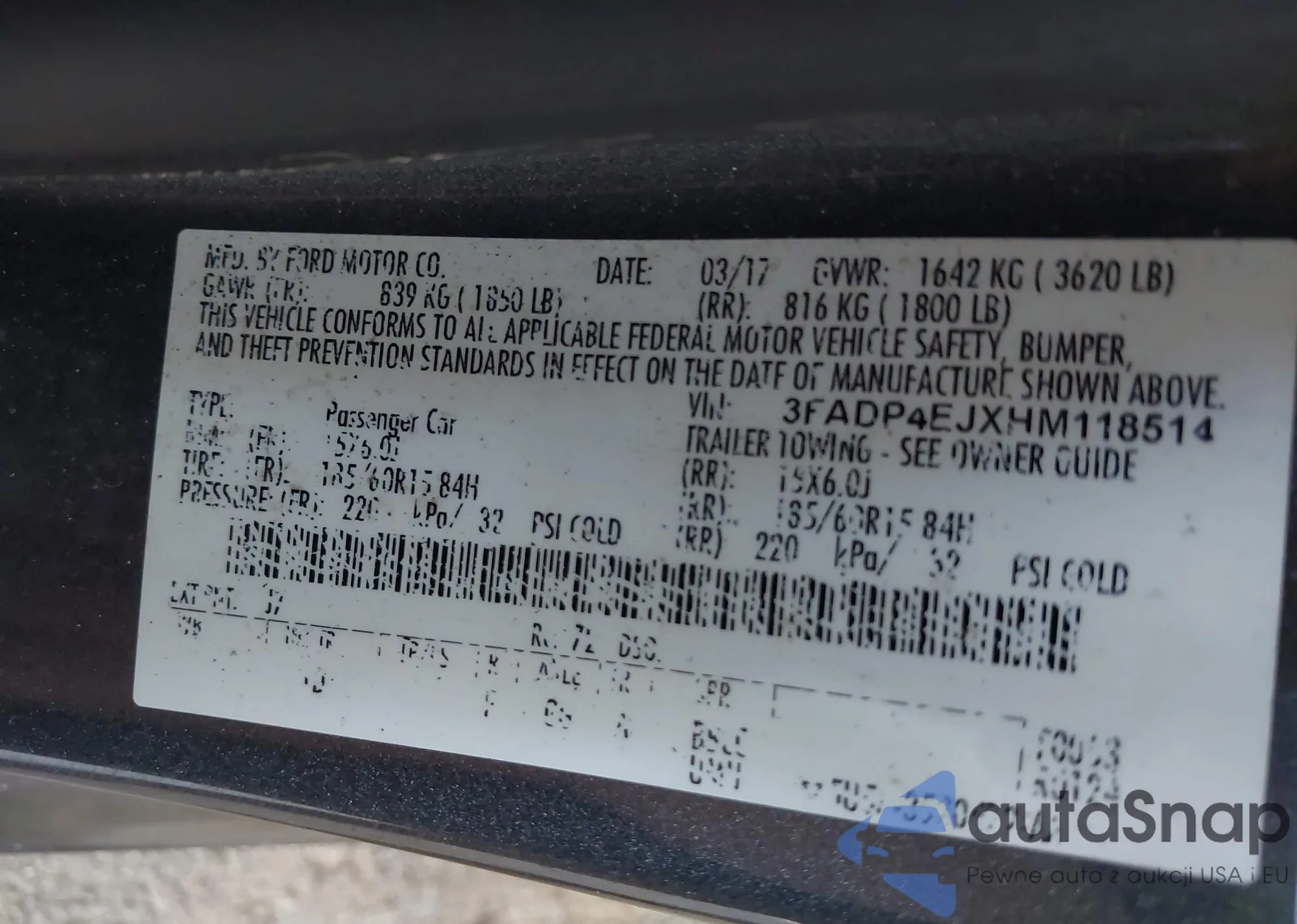 VIN: 3FADP4EJXHM118514