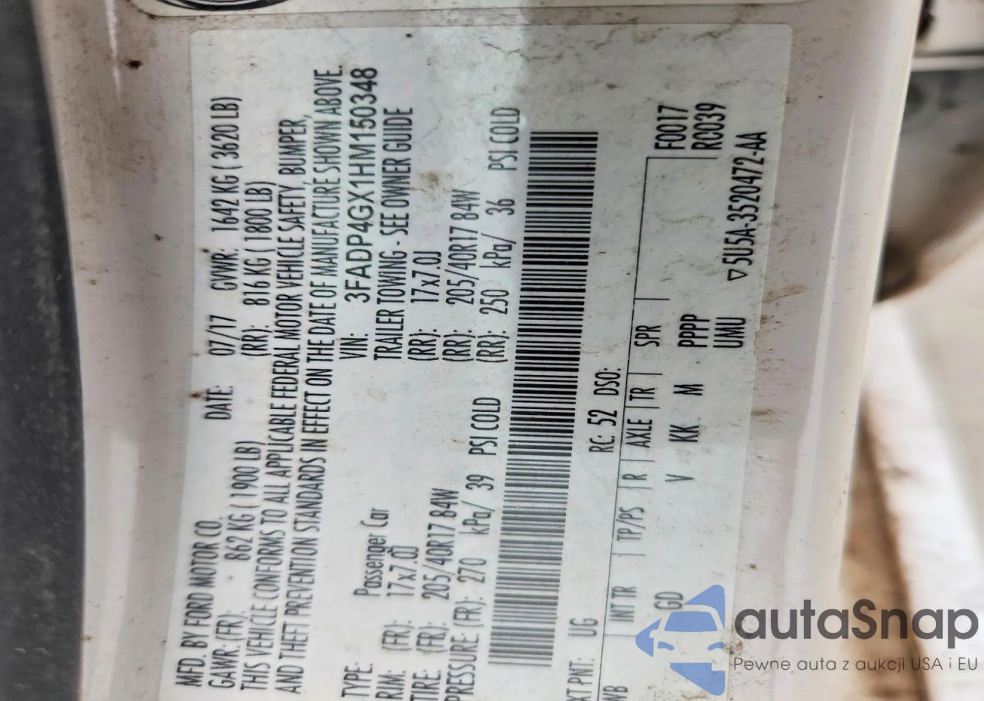 VIN: 3FADP4GX1HM150348