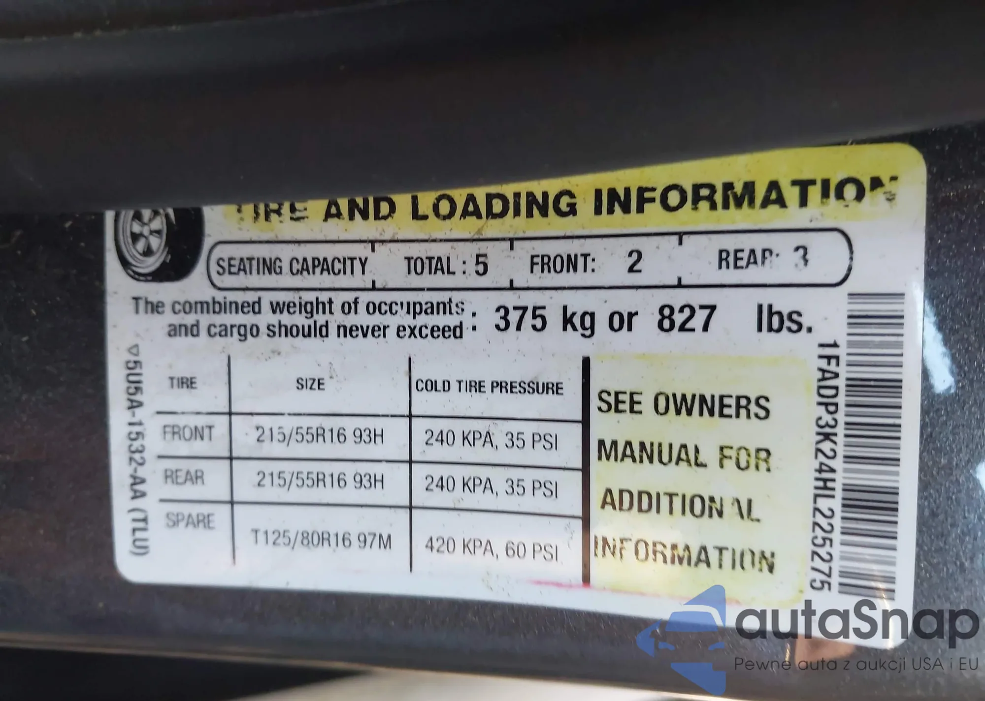 VIN: 1FADP3K24HL225275