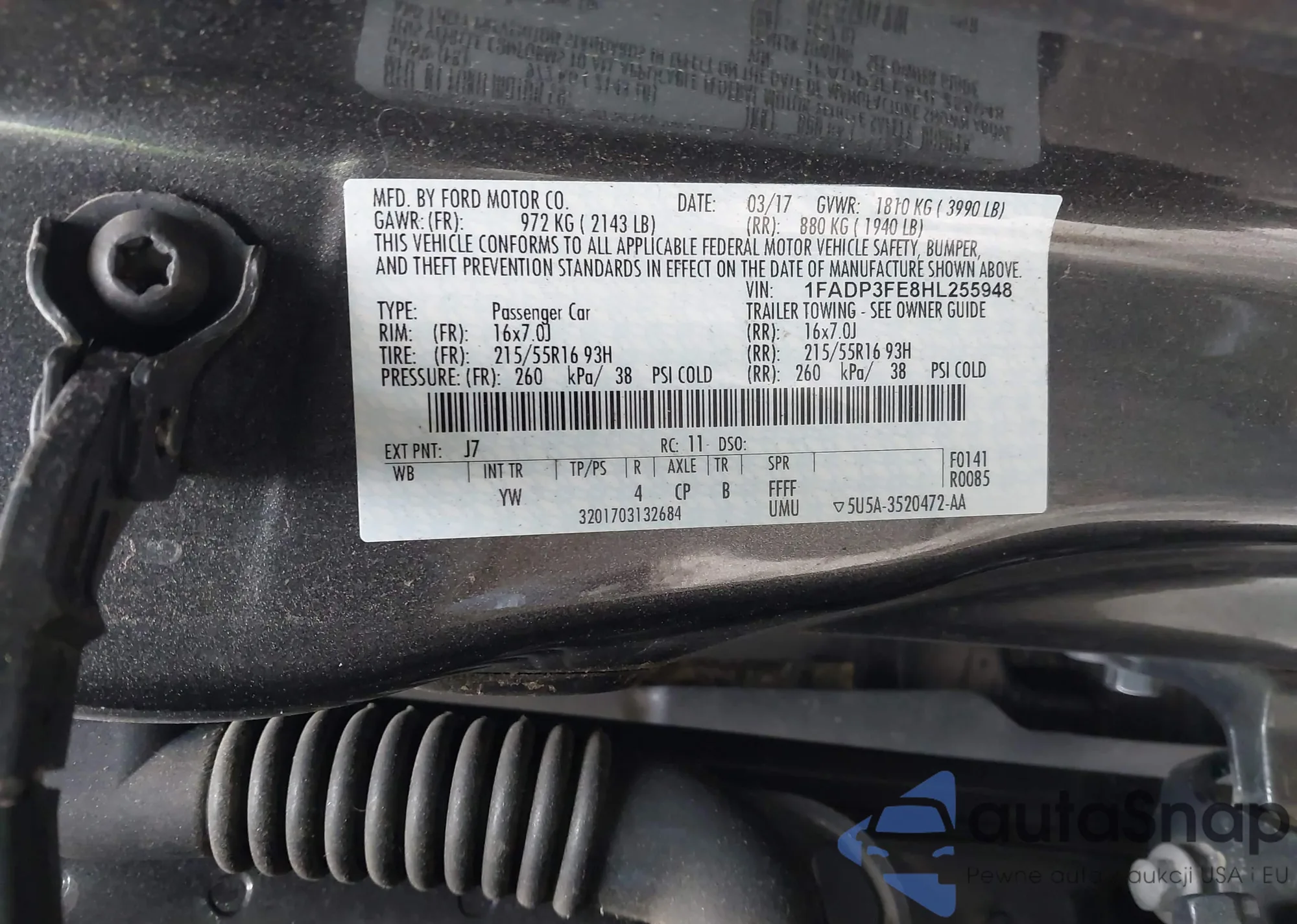 VIN: 1FADP3FE8HL255948