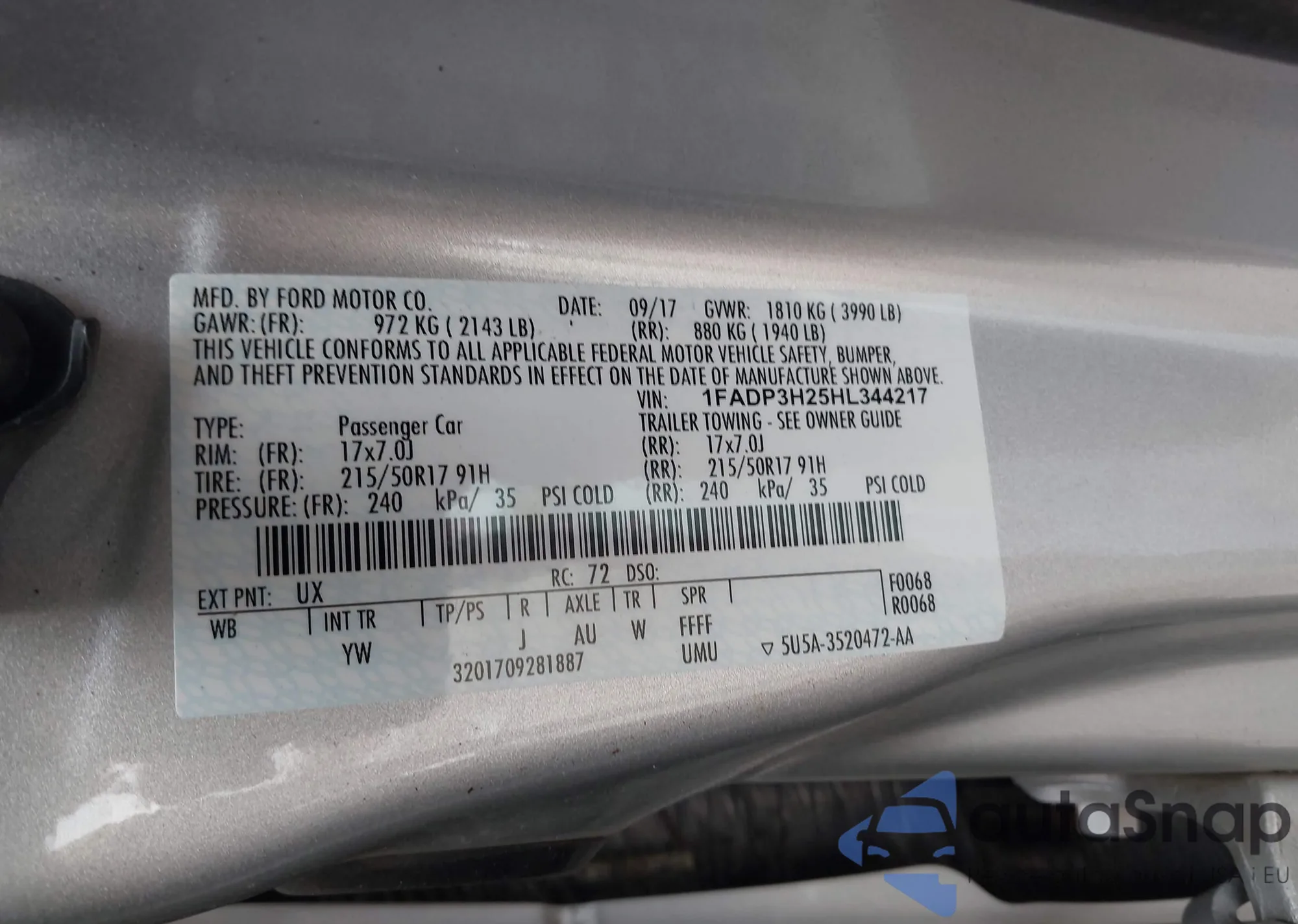 VIN: 1FADP3H25HL344217
