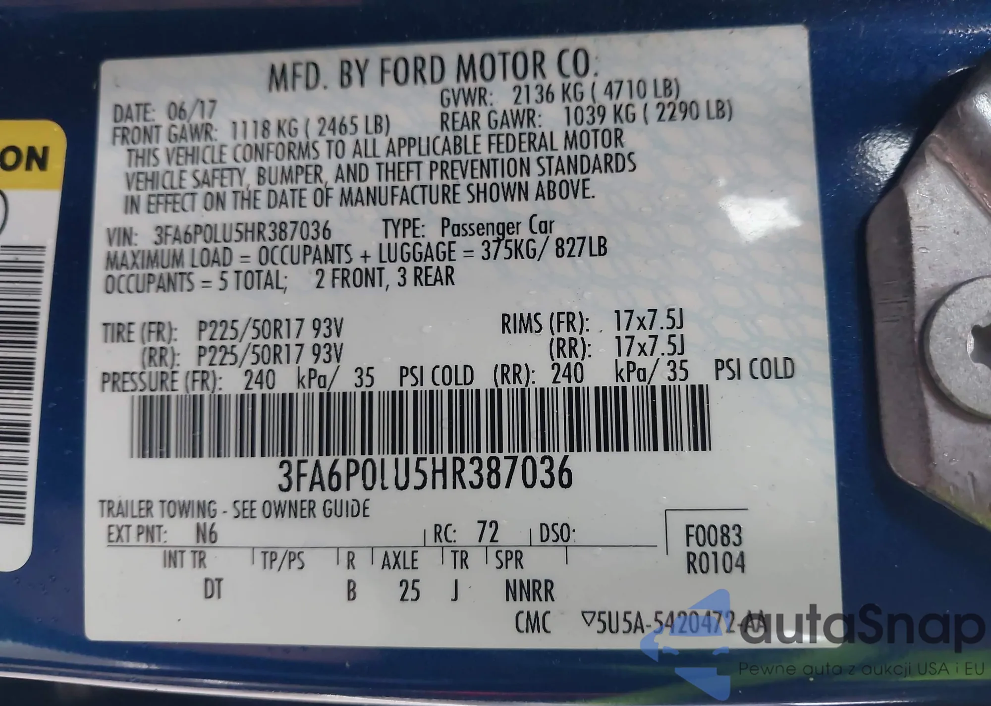 VIN: 3FA6P0LU5HR387036