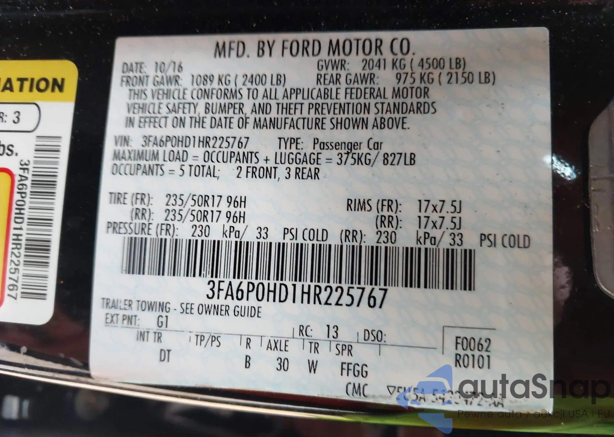 VIN: 3FA6P0HD1HR225767