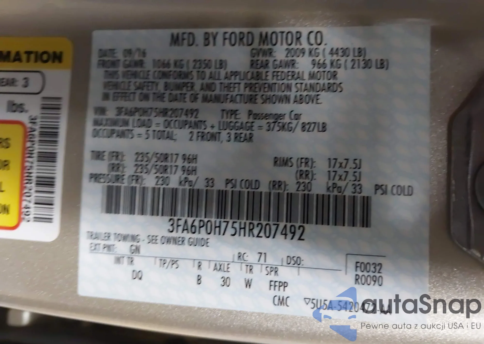 Автомобиль Ford Fusion 2017 (VIN 3FA6P0H75HR207492) ранее не участвовал в торгах. Документы чистые, пробег соответствует или ниже среднего по рынку. Продаётся страховой компанией — рекомендуем покупку. Доставка в порт займет около 6–8 недель.