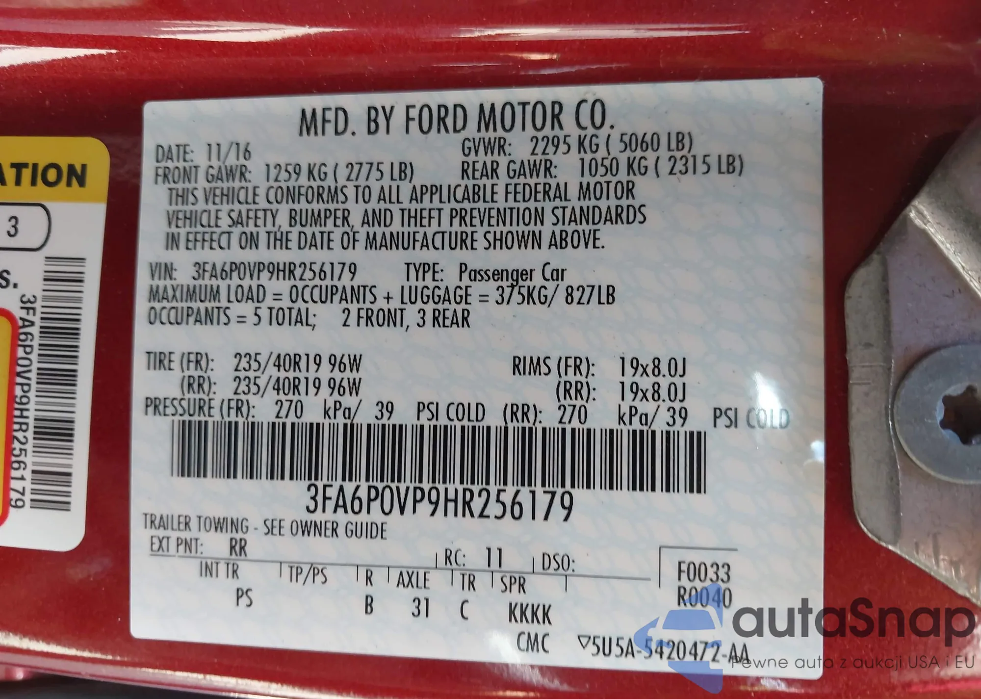 VIN: 3FA6P0VP9HR256179