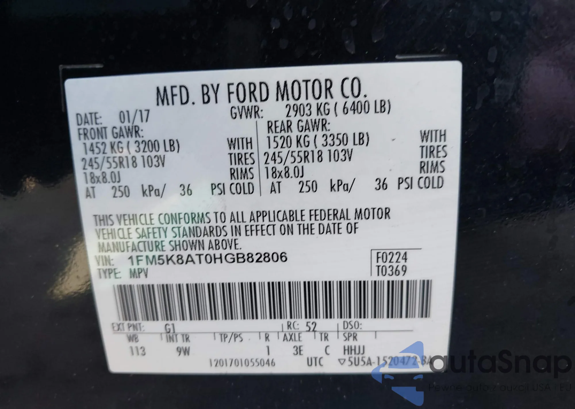 VIN: 1FM5K8AT0HGB82806