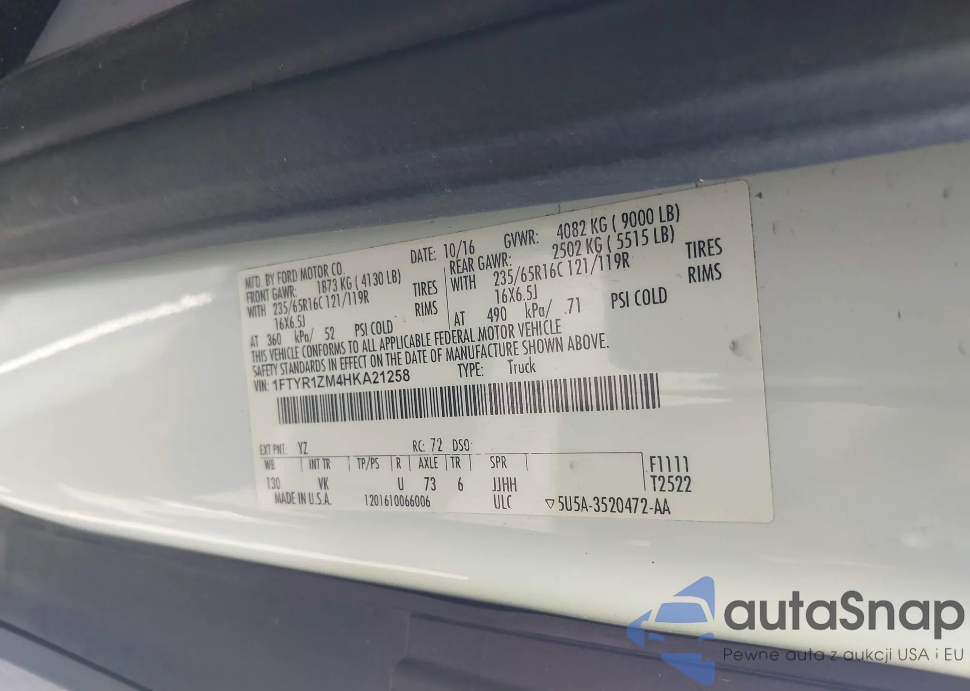 VIN: 1FTYR1ZM4HKA21258