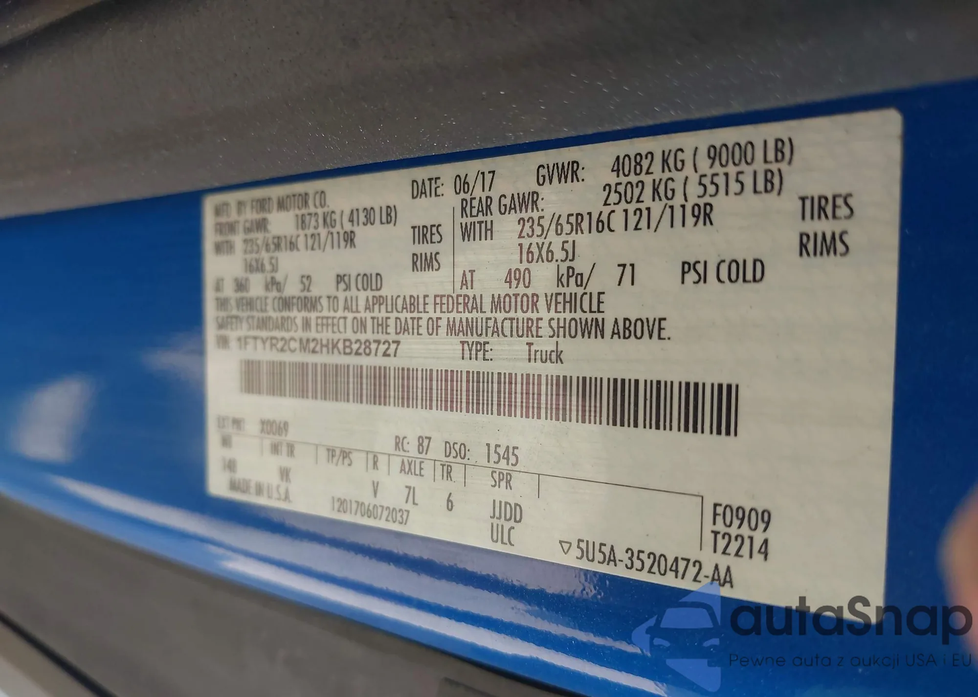 VIN: 1FTYR2CM2HKB28727