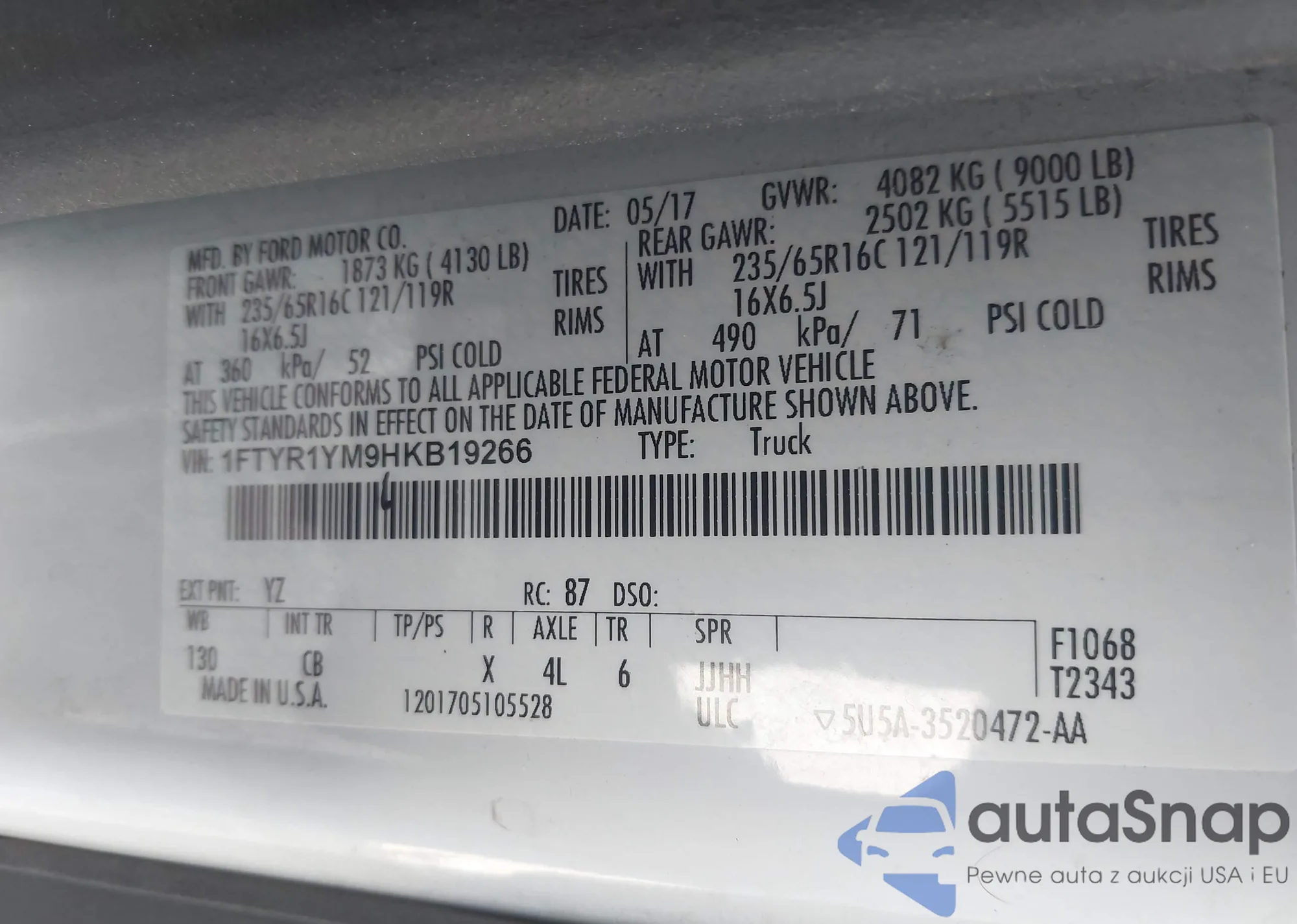 VIN: 1FTYR1YM9HKB19266