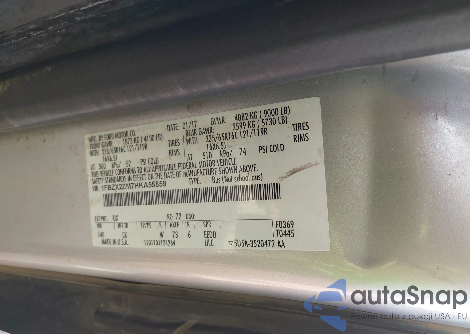 VIN: 1FBZX2ZM7HKA55859