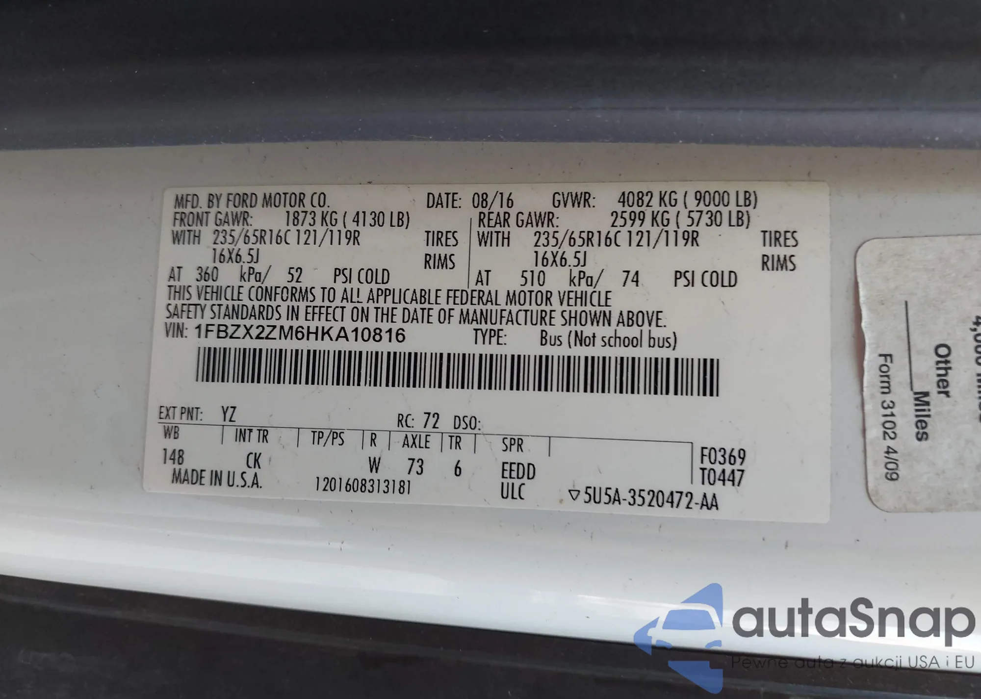 VIN: 1FBZX2ZM6HKA10816