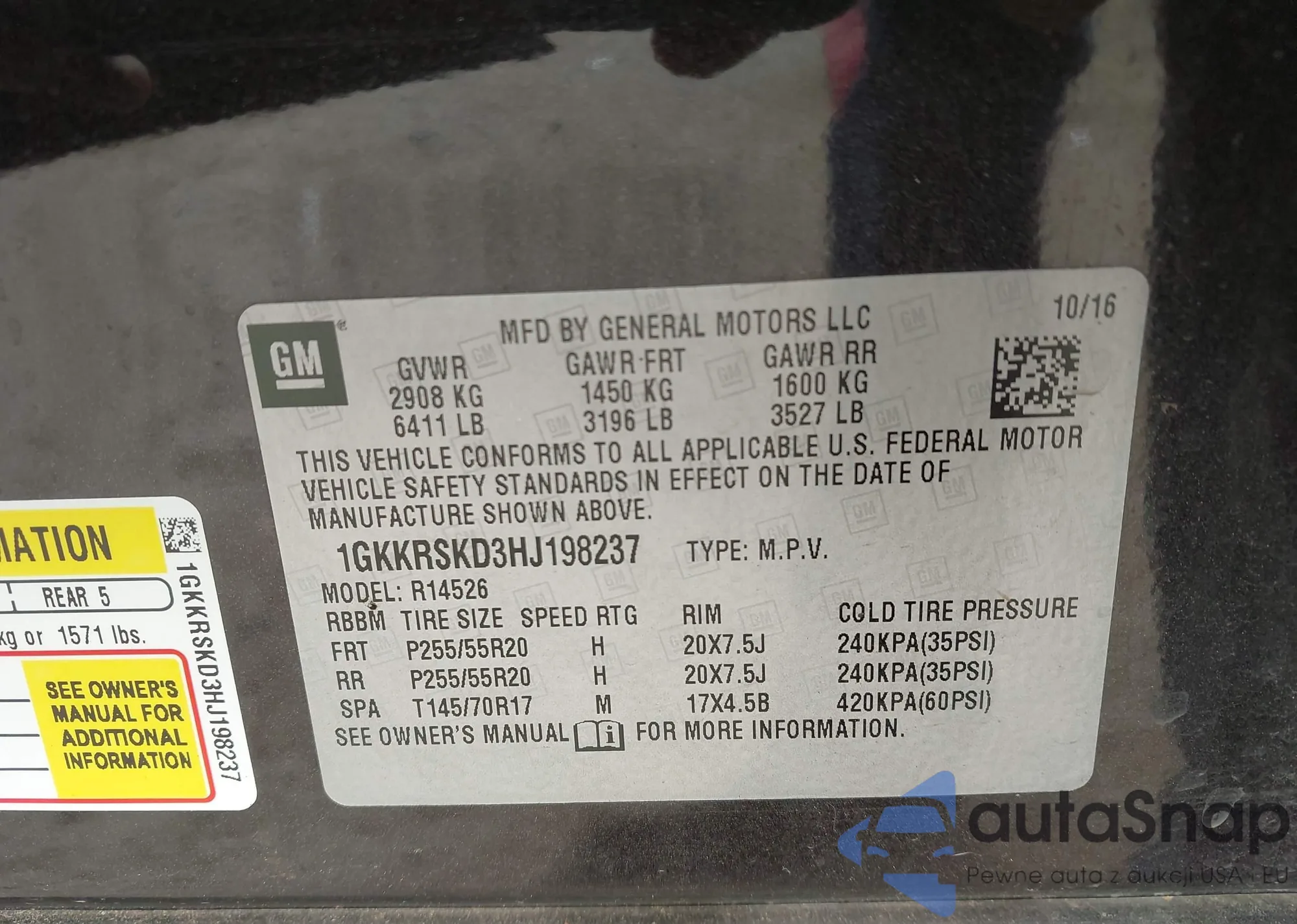VIN: 1GKKRSKD3HJ198237
