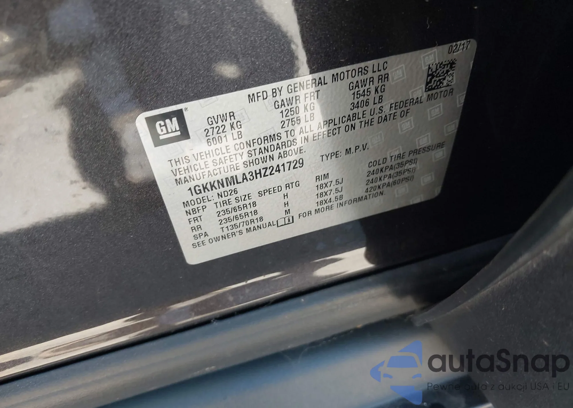 VIN: 1GKKNMLA3HZ241729