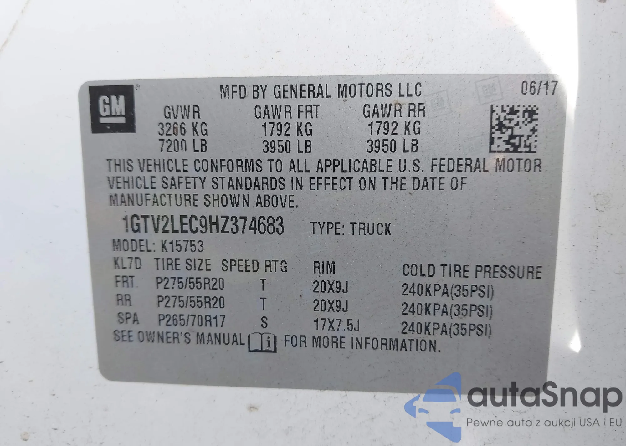 VIN: 1GTV2LEC9HZ374683