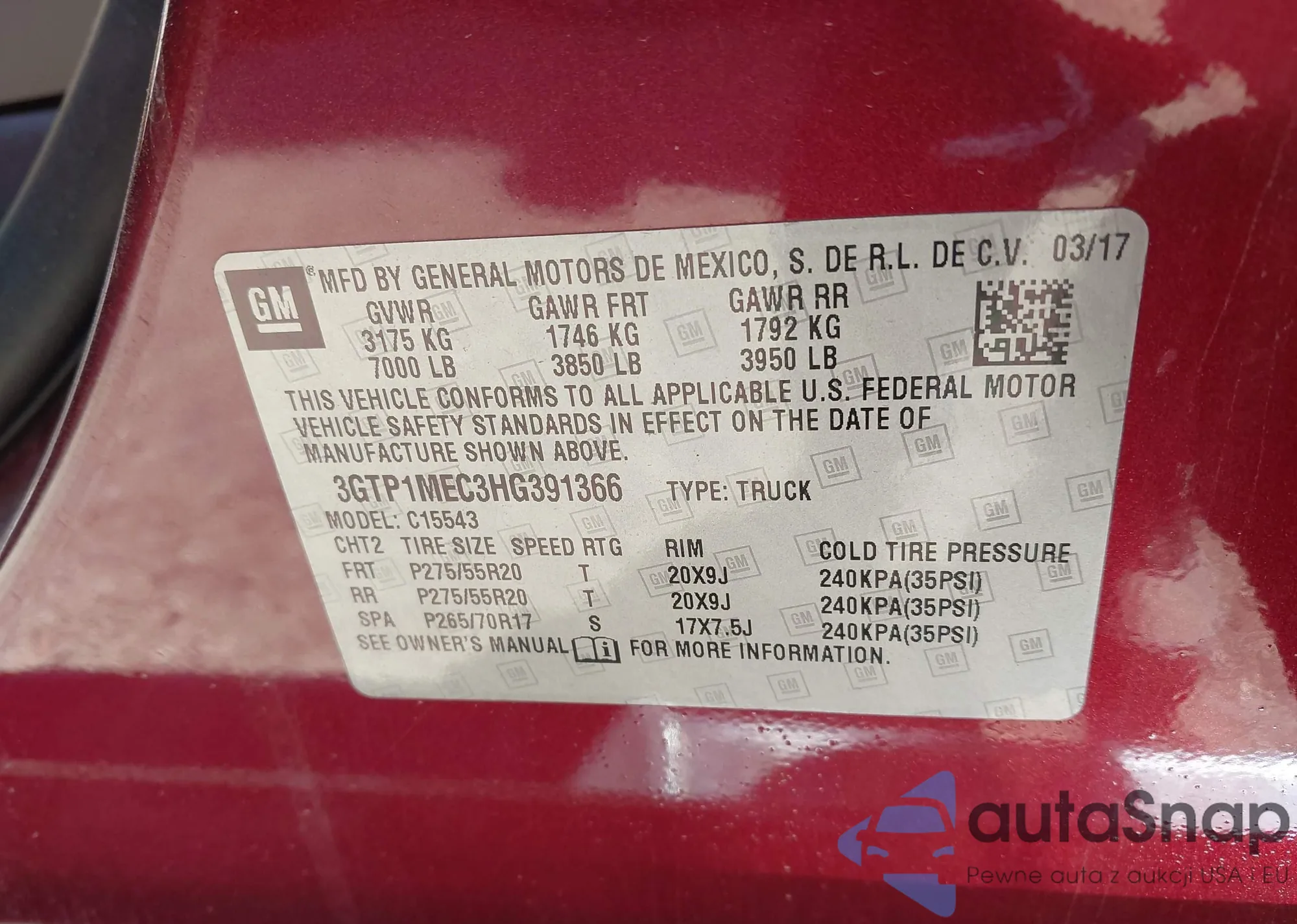 Автомобиль GMC Sierra 2017 (VIN 3GTP1MEC3HG391366) ранее не участвовал в торгах. Документы чистые, пробег соответствует или ниже среднего по рынку. Продаётся страховой компанией — рекомендуем покупку. Доставка в порт займет около 6–8 недель.
