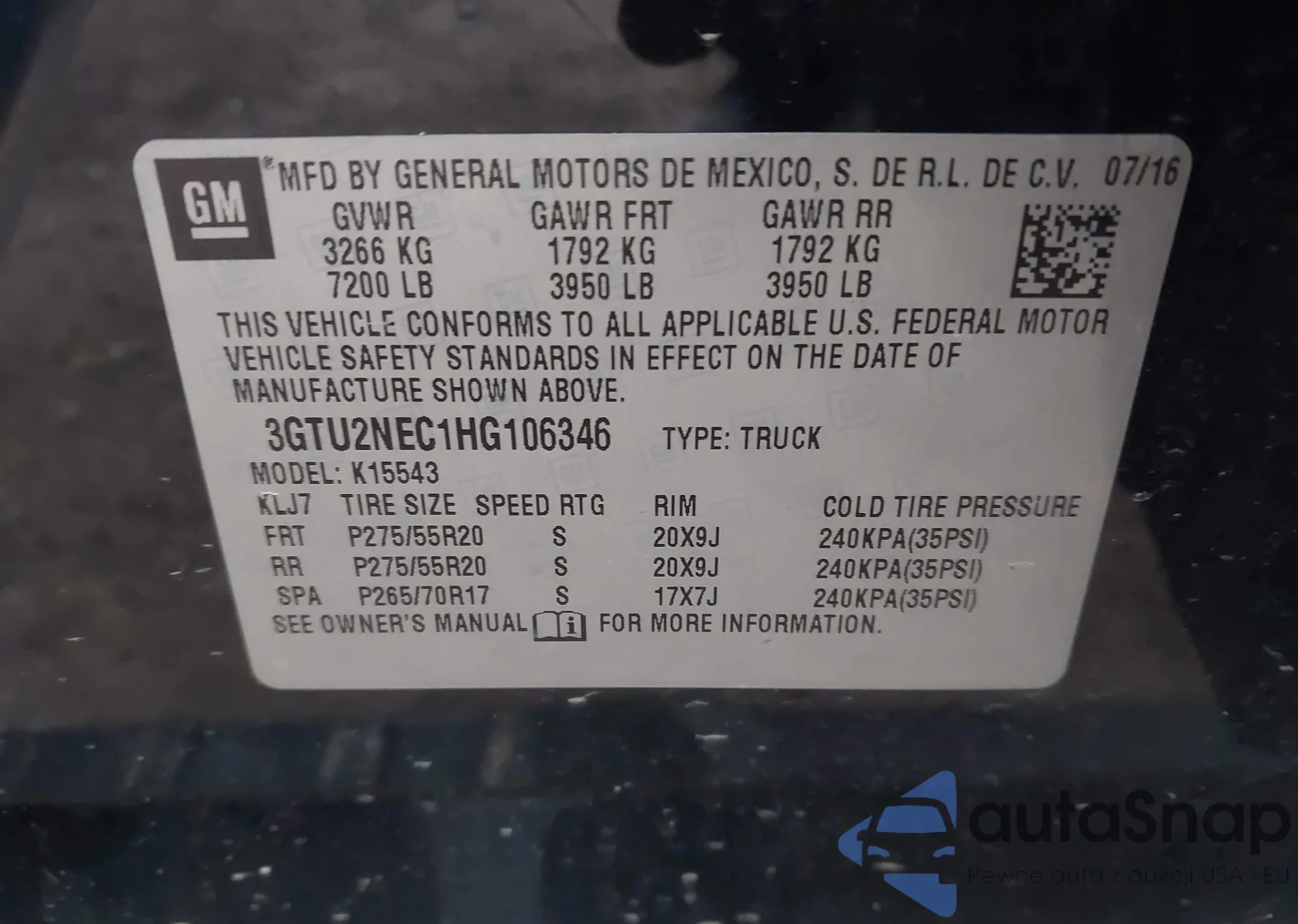 Автомобиль GMC Sierra 2017 (VIN 3GTU2NEC1HG106346) ранее не участвовал в торгах. Документы чистые, пробег соответствует или ниже среднего по рынку. Продаётся страховой компанией — рекомендуем покупку. Доставка в порт займет около 6–8 недель.