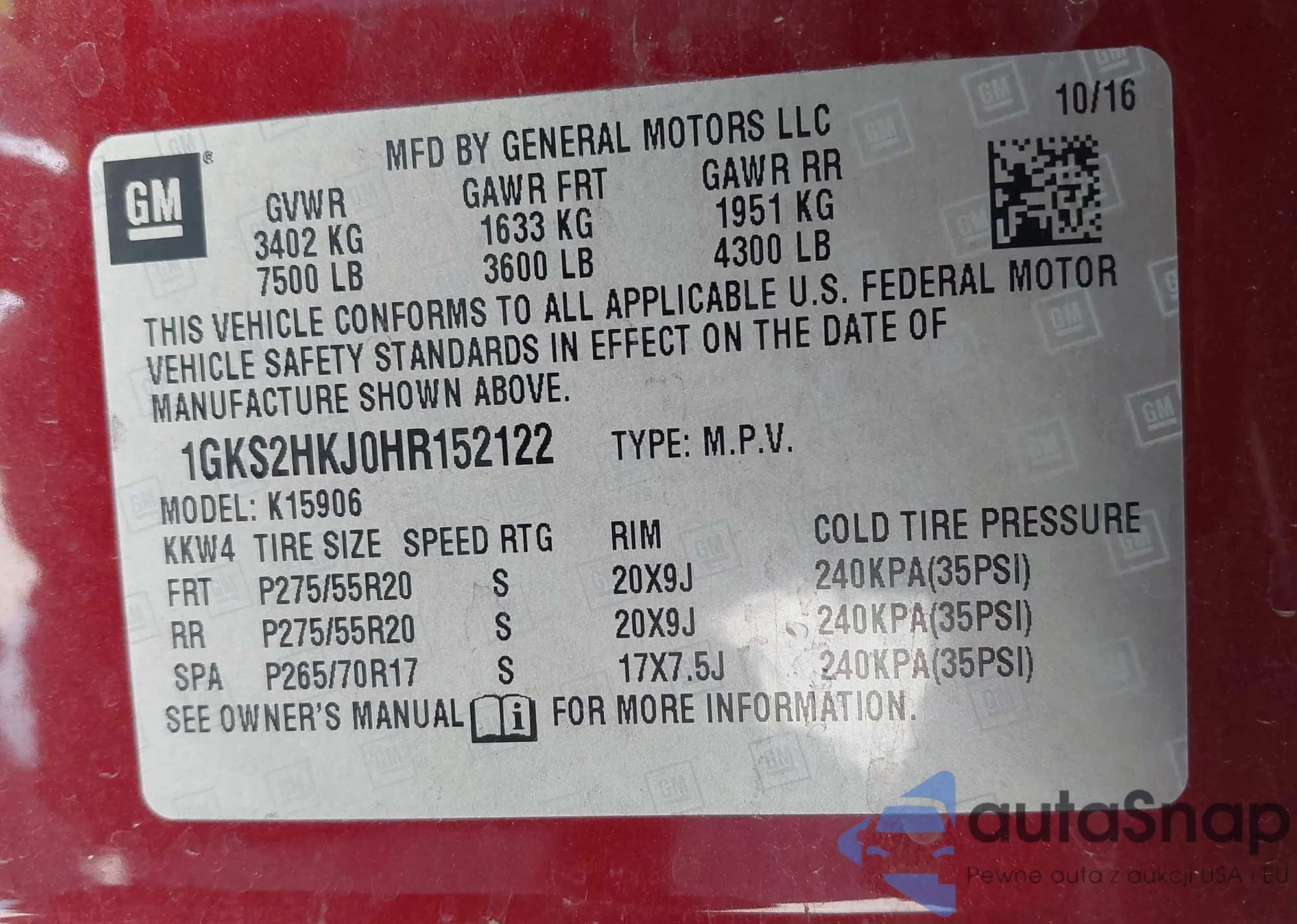 • VIN: 1GKS2HKJ0HR152122