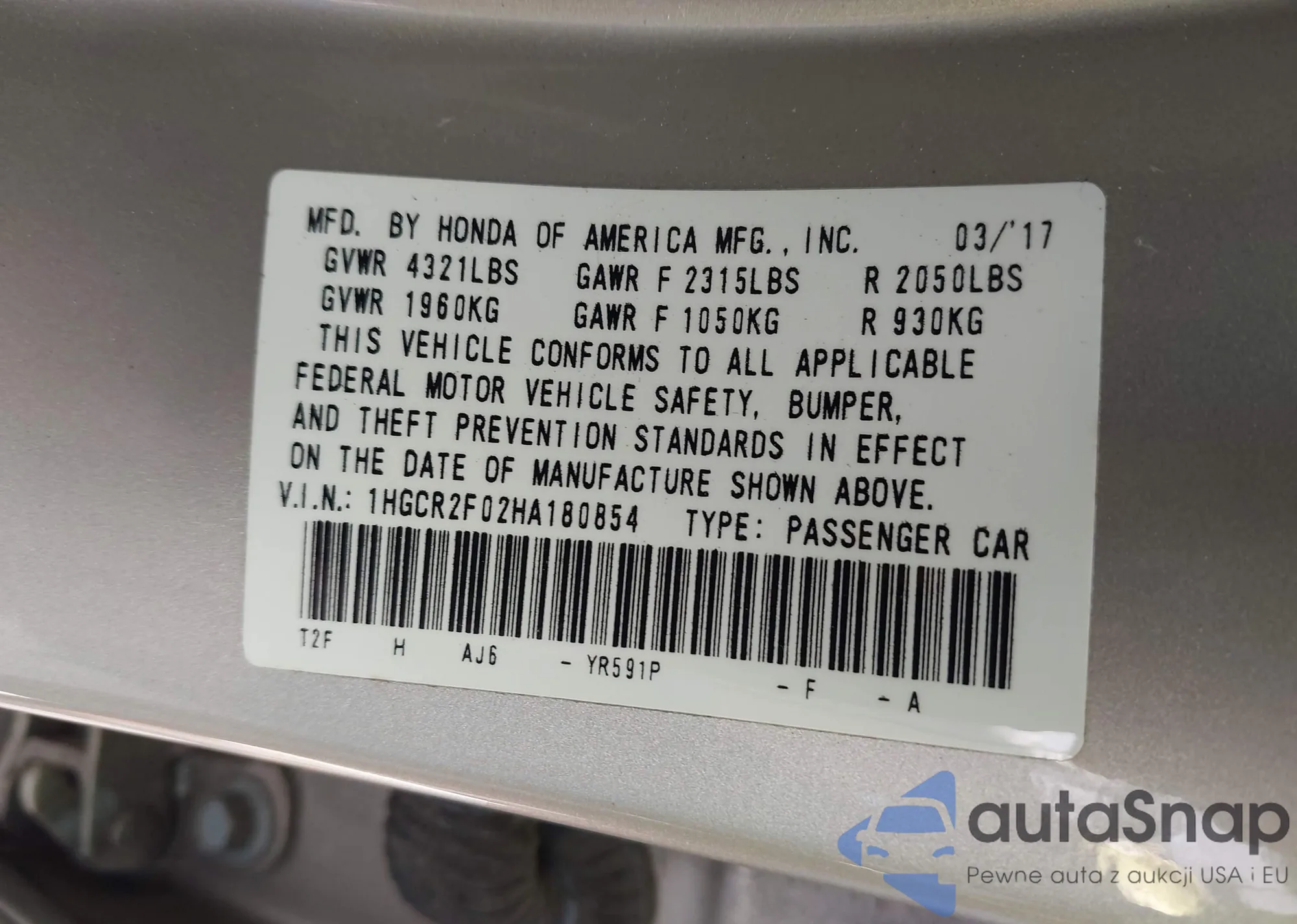 VIN: 1HGCR2F02HA180854