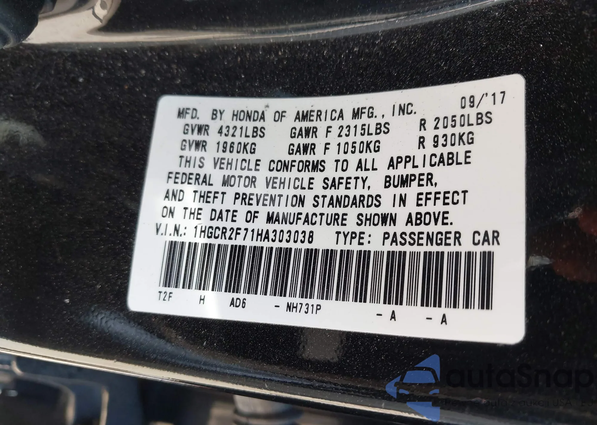 VIN: 1HGCR2F71HA303038