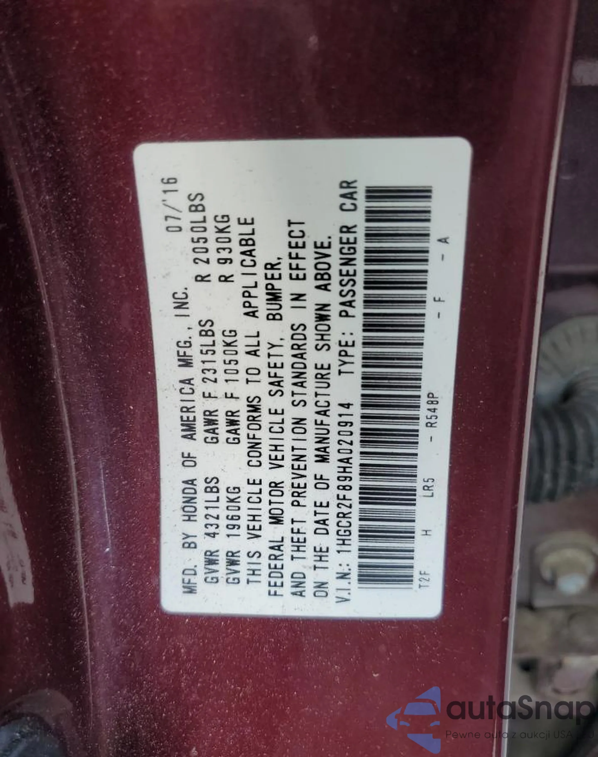 VIN: 1HGCR2F89HA020914