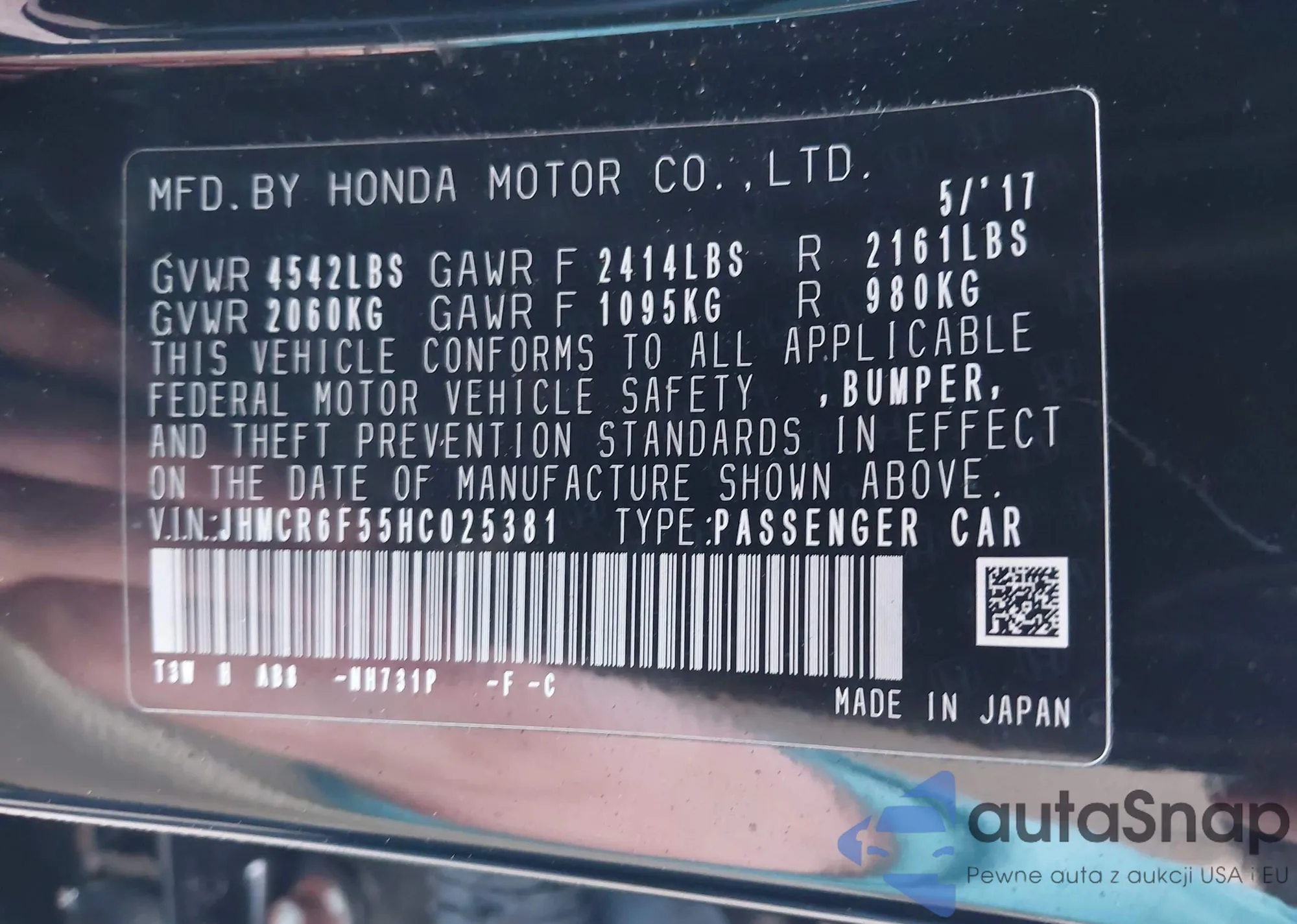 Автомобиль Honda Accord 2017 (VIN JHMCR6F55HC025381) ранее не участвовал в торгах. Документы чистые, пробег соответствует или ниже среднего по рынку. Продаётся страховой компанией — рекомендуем покупку. Доставка в порт займет около 6–8 недель.