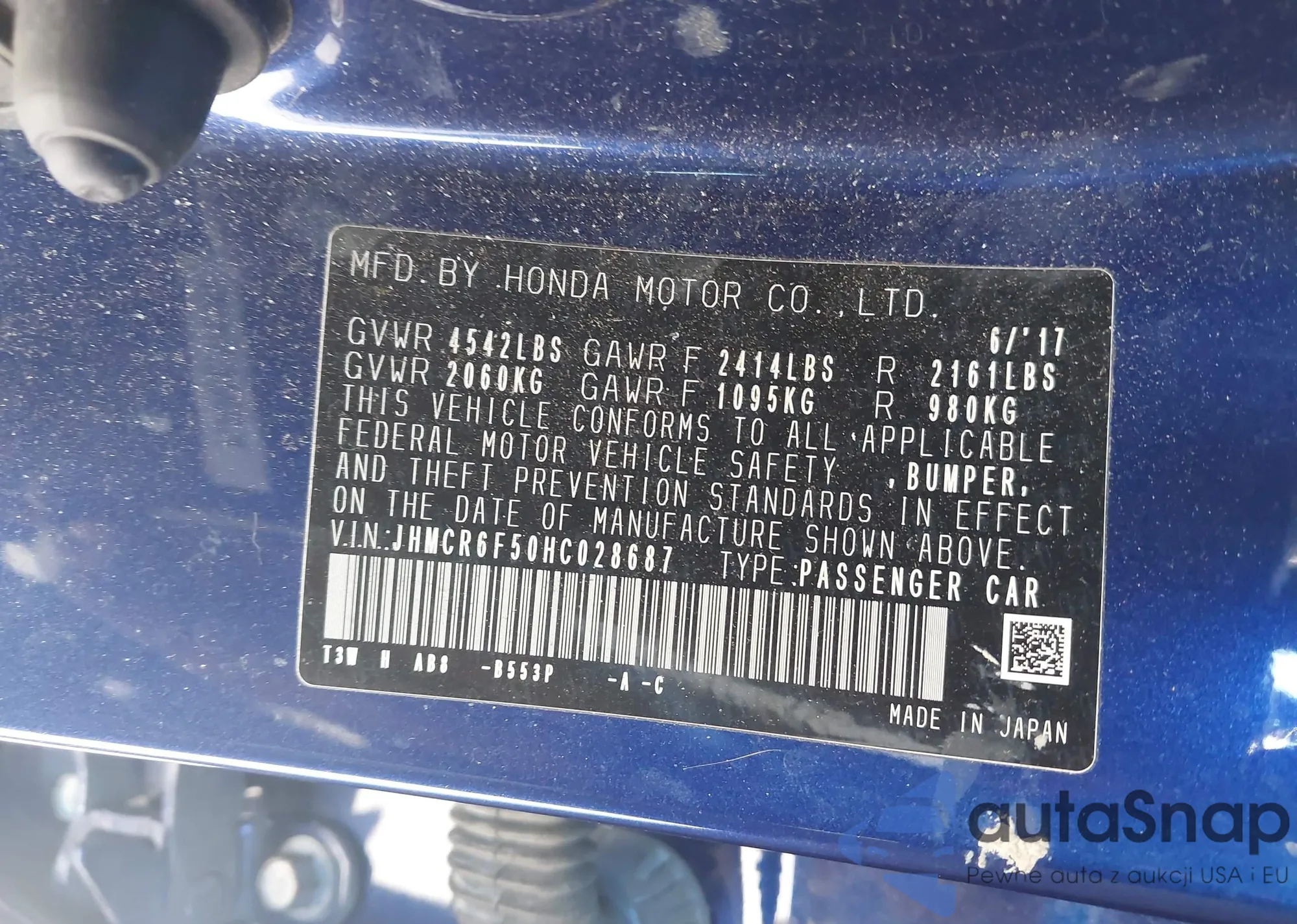Автомобиль Honda Accord 2017 (VIN JHMCR6F50HC028687) ранее не участвовал в торгах. Документы чистые, пробег соответствует или ниже среднего по рынку. Продаётся страховой компанией — рекомендуем покупку. Доставка в порт займет около 6–8 недель.