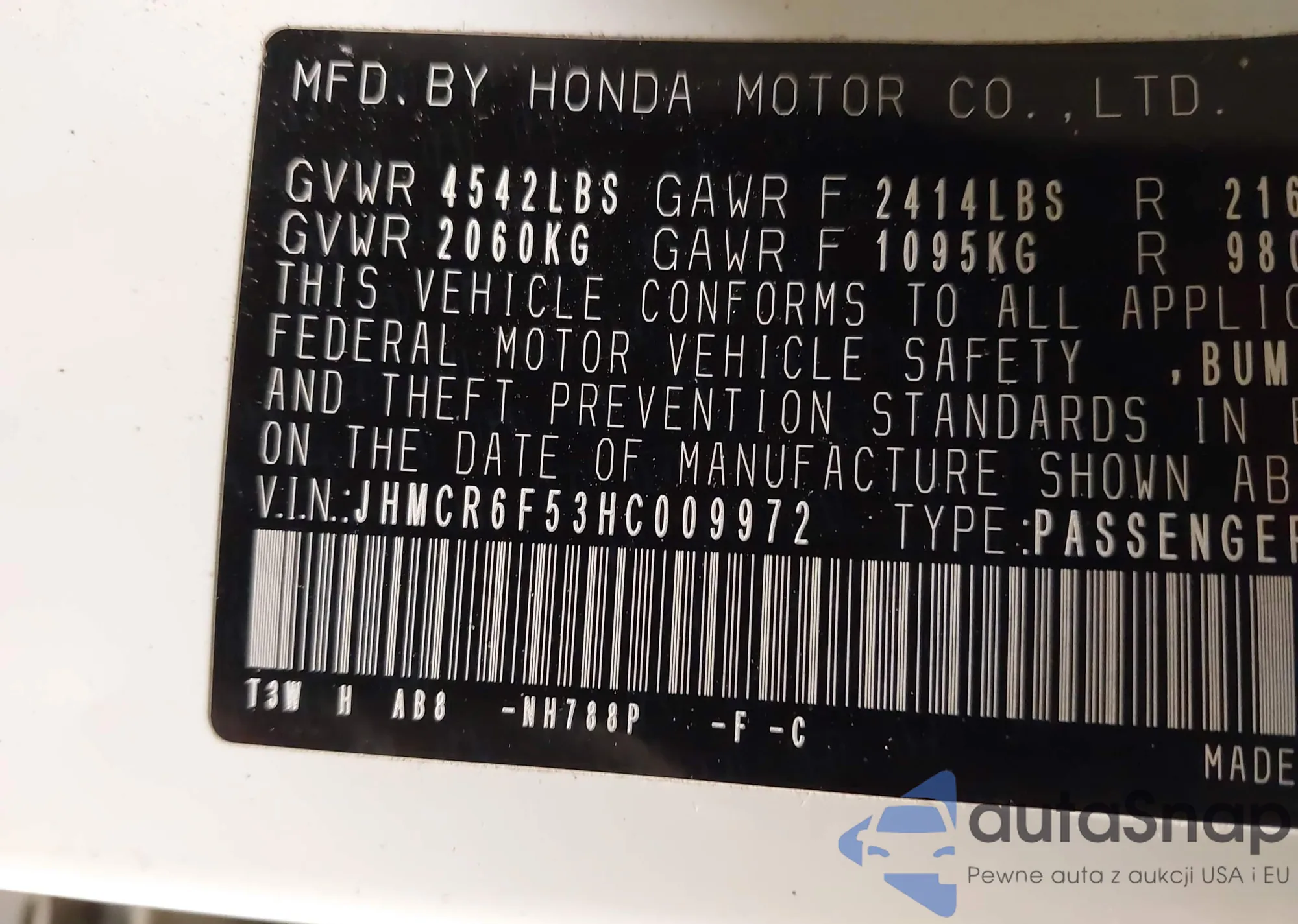 Автомобиль Honda Accord 2017 (VIN JHMCR6F53HC009972) ранее не участвовал в торгах. Документы чистые, пробег соответствует или ниже среднего по рынку. Продаётся страховой компанией — рекомендуем покупку. Доставка в порт займет около 6–8 недель.
