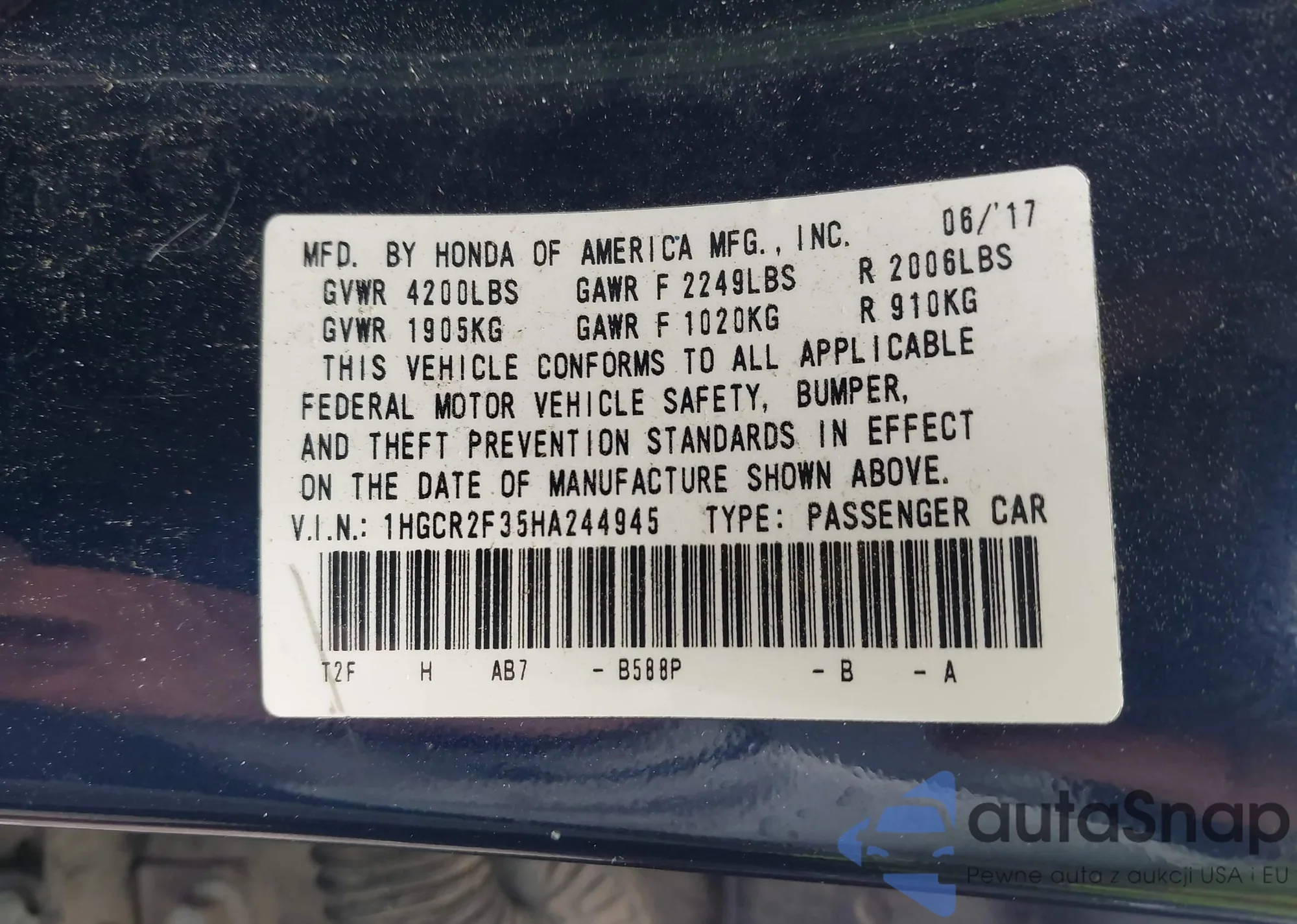 VIN: 1HGCR2F35HA244945
