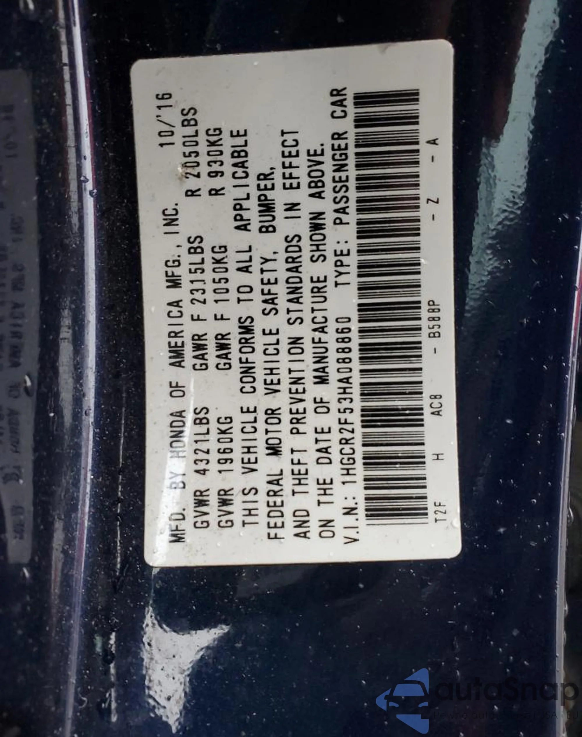 VIN: 1HGCR2F53HA088860