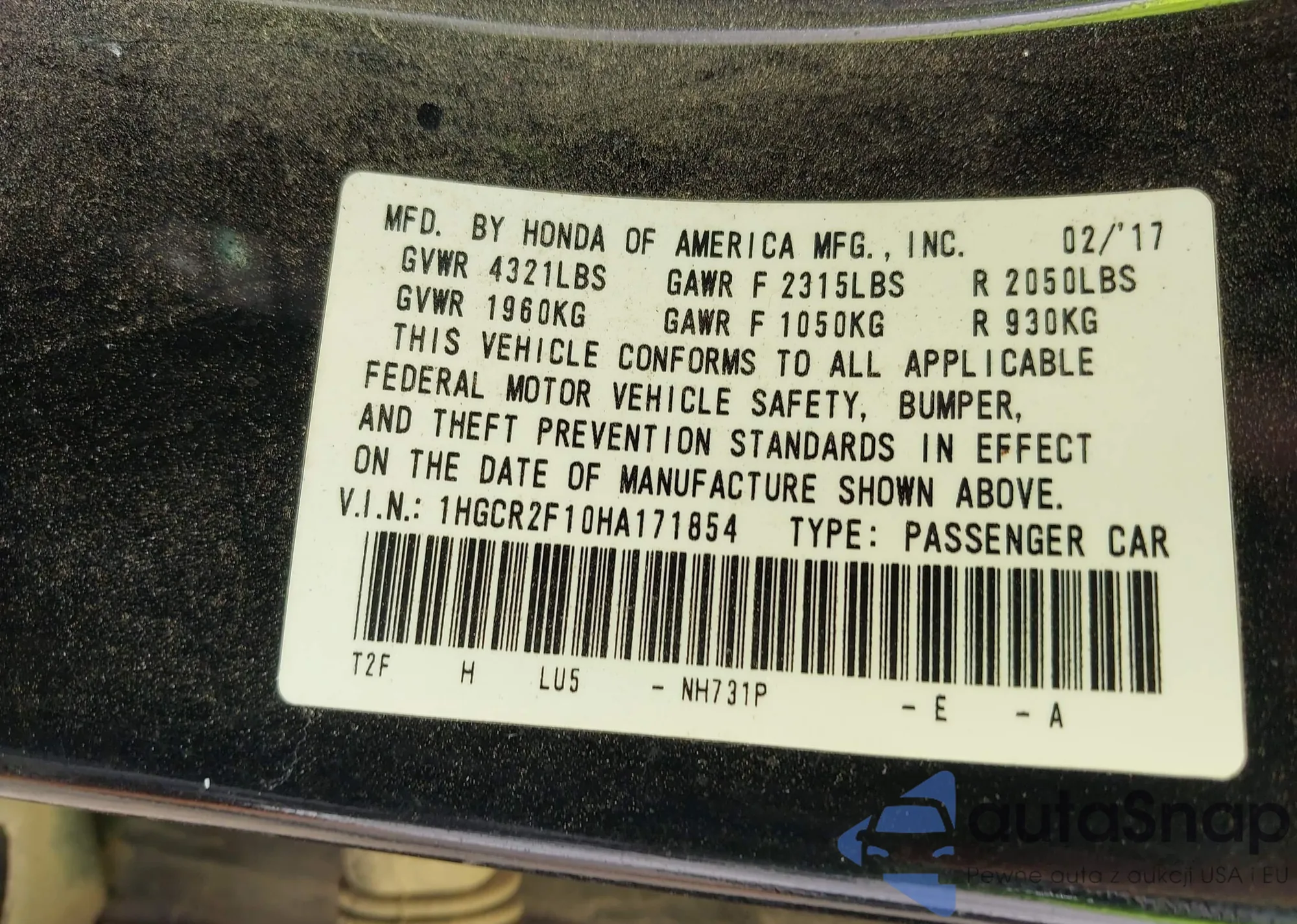 VIN: 1HGCR2F10HA171854